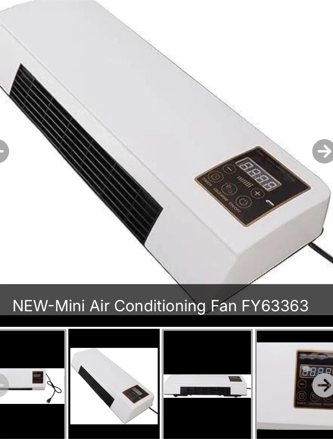 This is a new mini air conditioning fan. It has a digital display for settings like timer and temperature control. It offers heating and cooling functions. Perfect for a small space needing climate control!
