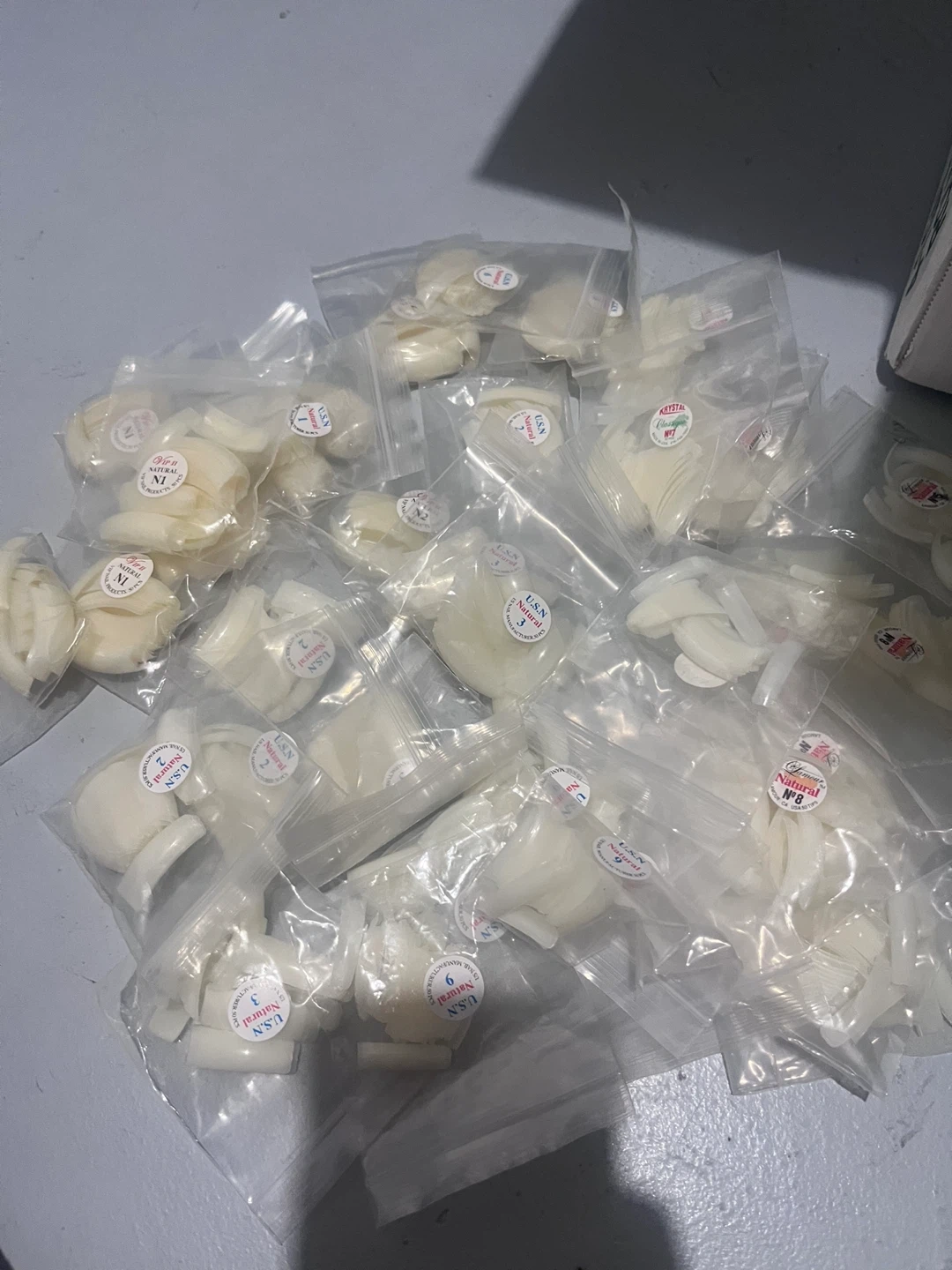 Bag of assorted U.S.N. Natural nail tips in various sizes. Includes tips from sizes 1 to 10,and a few loose ones. Perfect for nail technicians or DIY manicures!