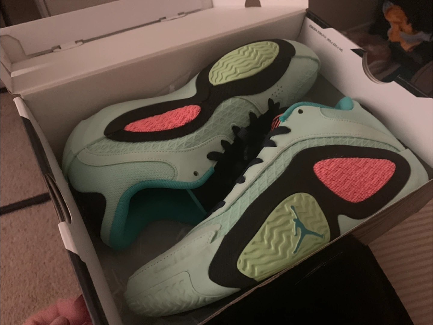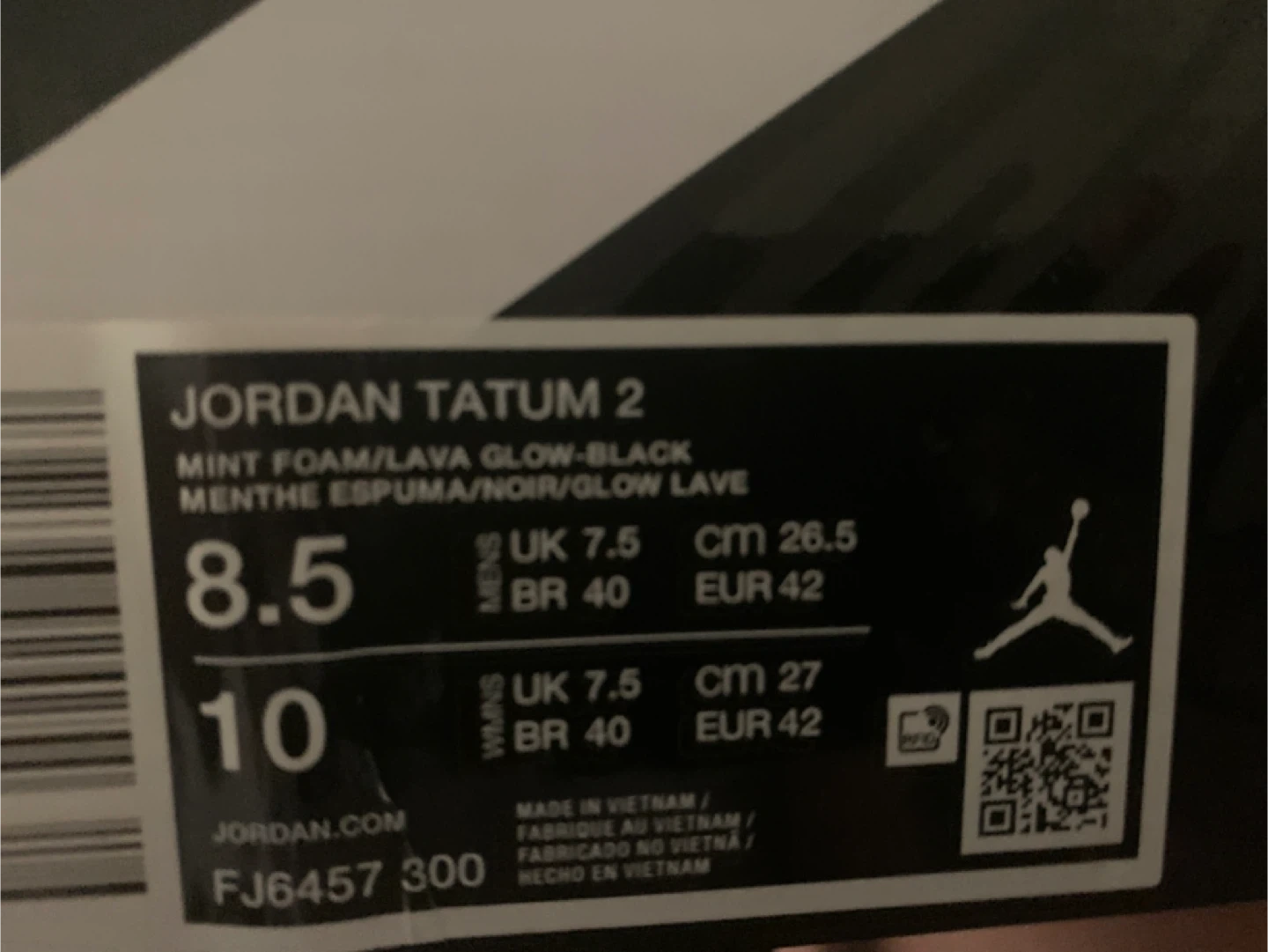 Jordan Tatum 2 sneakers in Mint Foam, Lava Glow, and Black. Includes original box. Men's size 8.5 UK 7.5, EUR 42, CM 26.5. Women's size 10 UK 7.5, EUR 42, CM 27 offers
