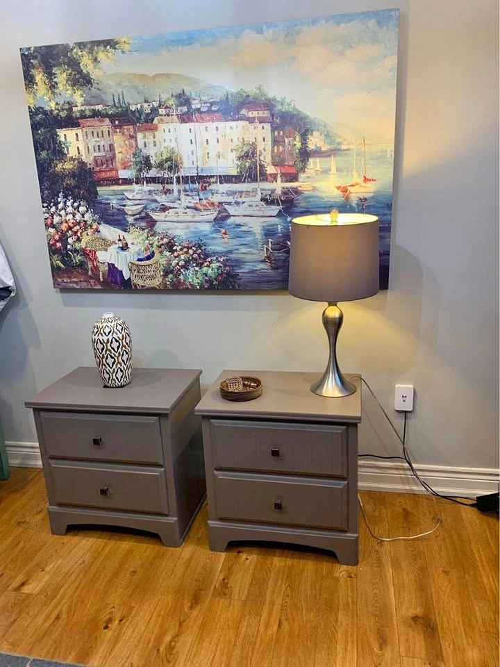 Wood night stands painted in the beautiful colour Elmwood by Fusion Mineral Paints. See sample colour in pictures.