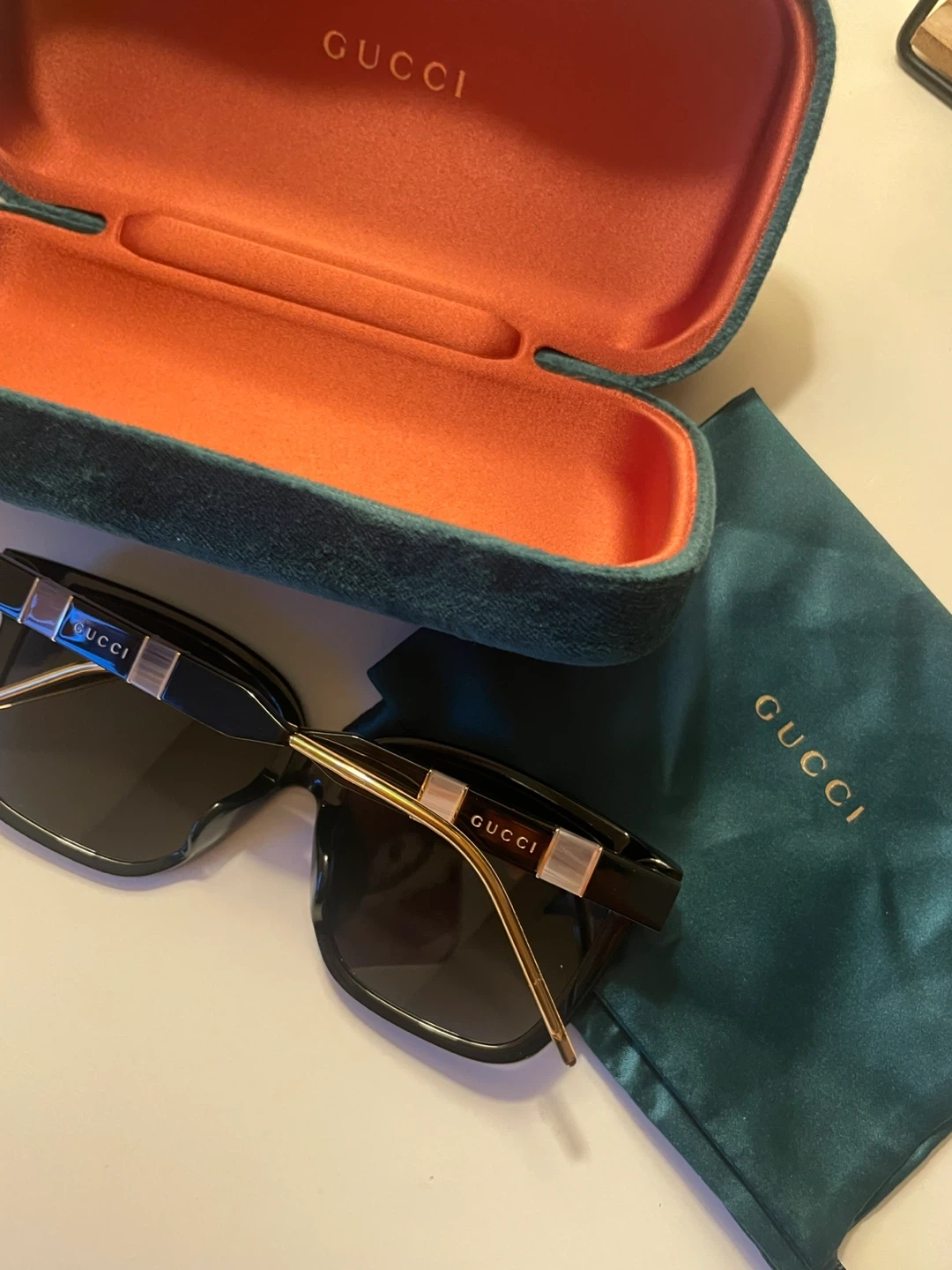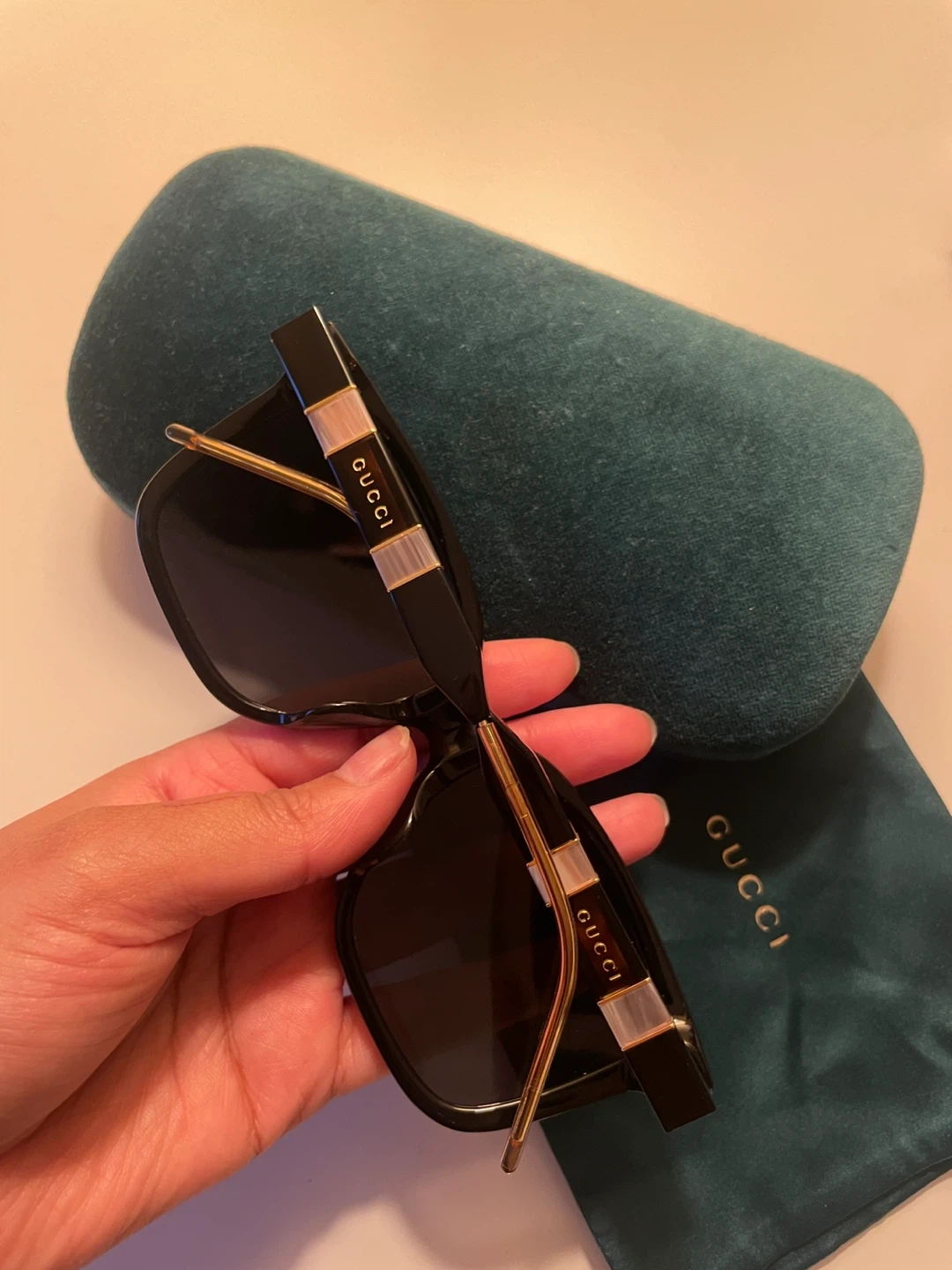 Black oversized GUCCI sunglasses. Comes with original case and dust bag. Perfect for sunny days!