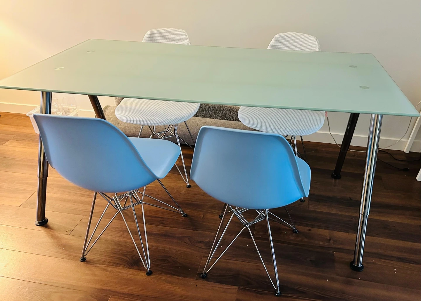 Set of 4 premium chairs ( light blue color) with stainless steel legs - $120