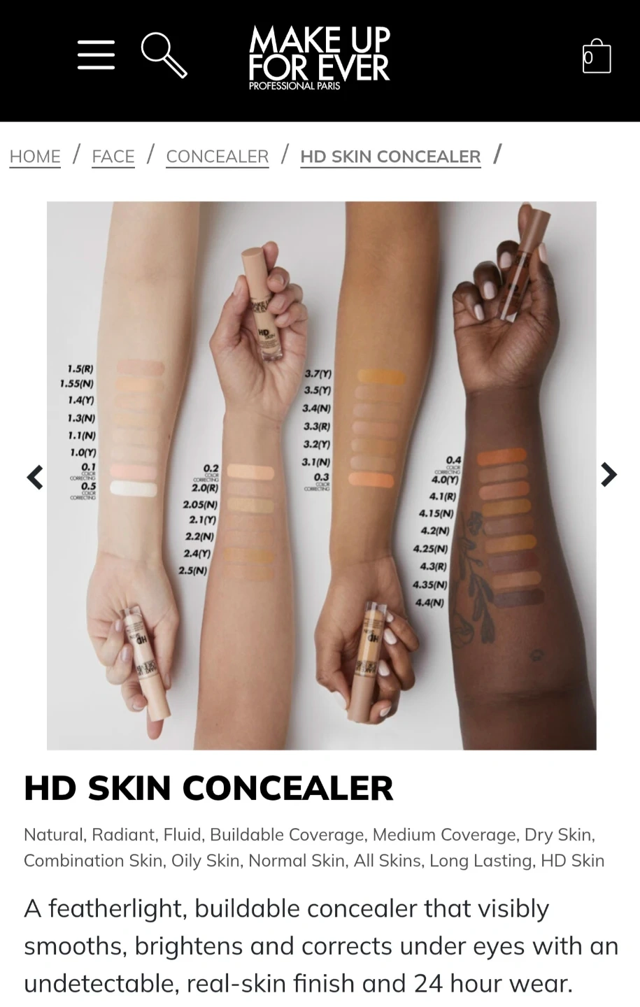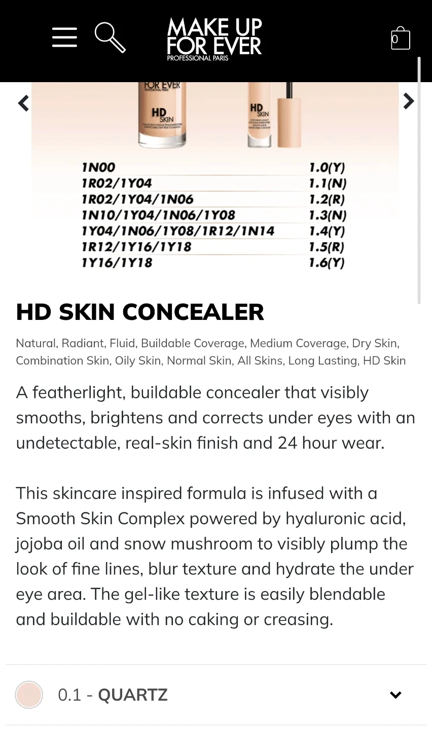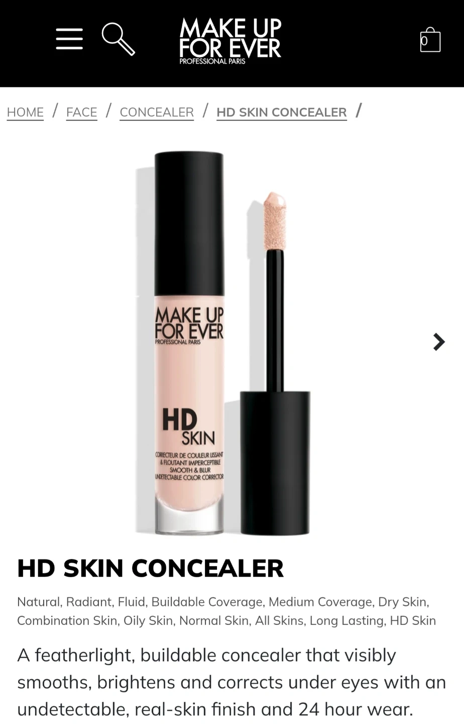 This is the Make Up For Ever HD Skin Concealer in the shade 0.1 Quartz. It's a featherlight, buildable concealer that provides smooths, brightens, and corrects under eyes. The gel-like texture is blendable and buildable with no caking or creasing.