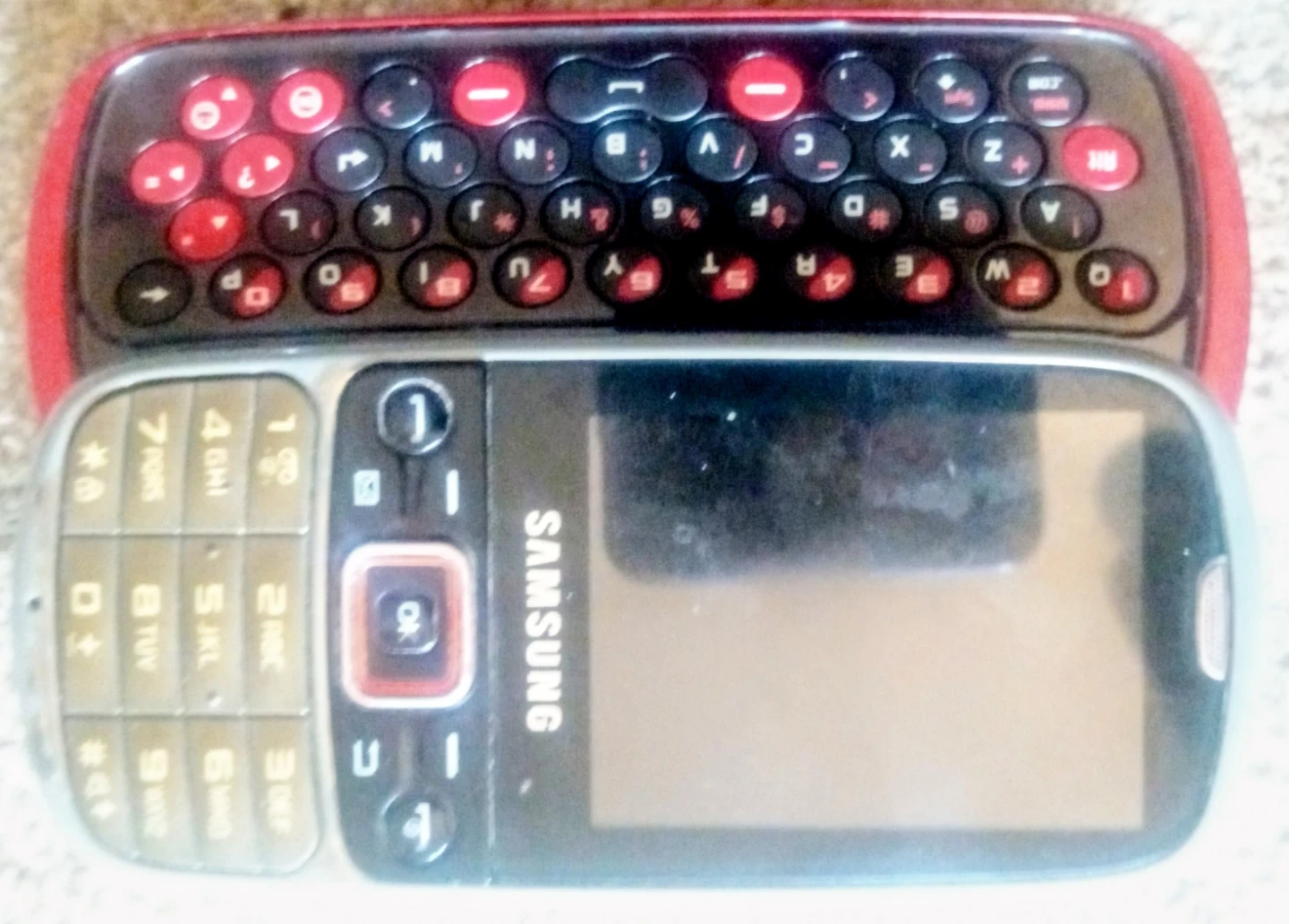 A basic Samsung mobile phone. It has a physical keypad for easy texting. This phone is straightforward to use for calls and messages.