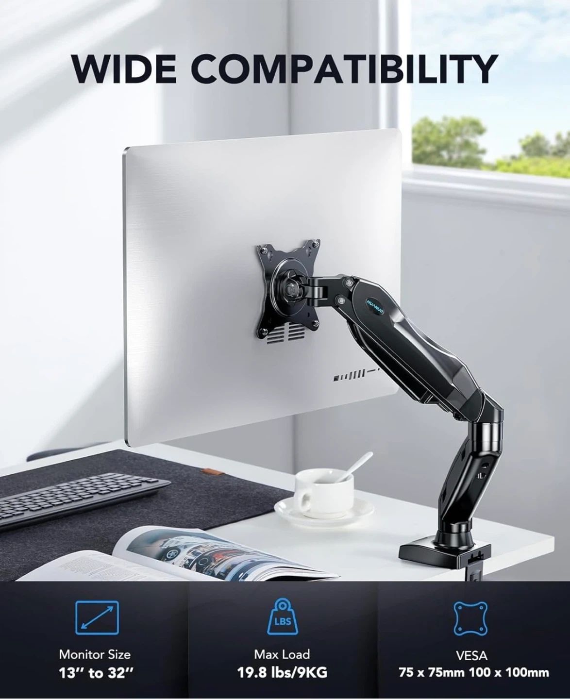 HUANUO Single Monitor Mount, 13 to 32 Inch Design Monitor Arm, Adjustable Stand, Vesa Mount with Clamp and Grommet Base - Fits 4.4 to 19.8lbs LCD Computer Monitors.