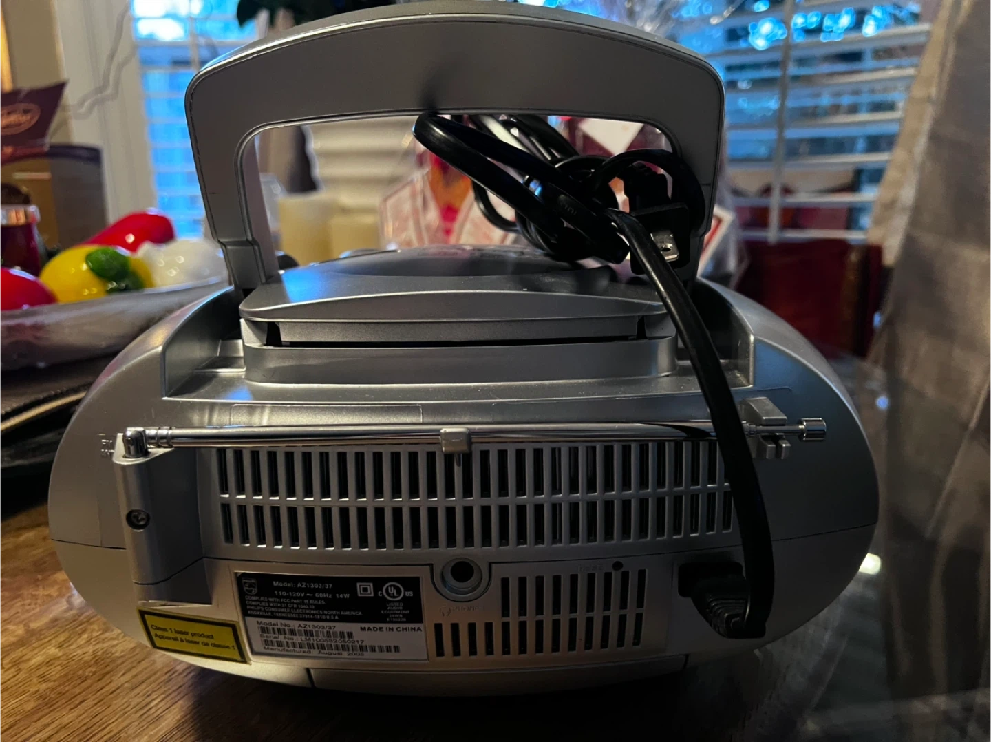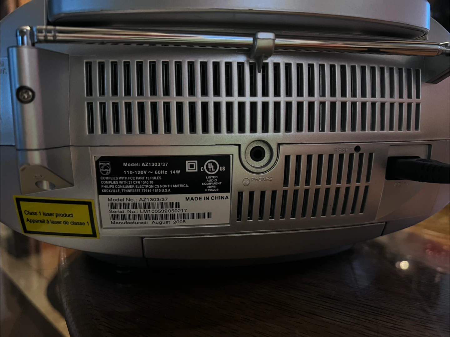 Philips AZ1303/37 portable CD player. It has digital tuning and MP3-CD playback. The manufacturing date is August 2005. It's in good working condition.