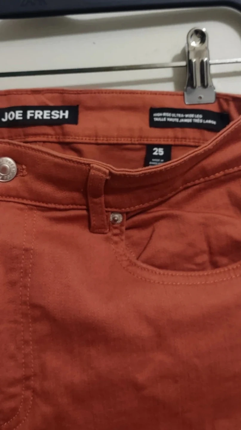 Selling a pair of Joe Fresh high rise wide leg pants in a lovely terracotta colour. They are a size 25 and in great condition!