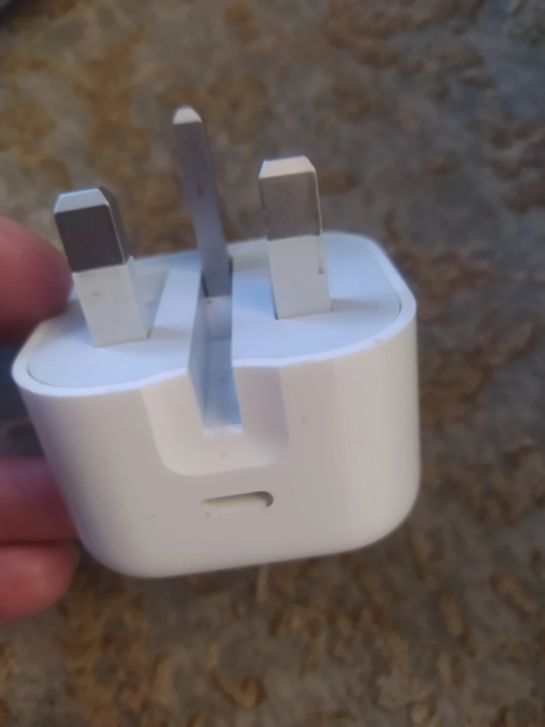 This is a white USB-C power adapter. It's a compact and portable charging solution. Works with various USB-C devices for quick power ups!