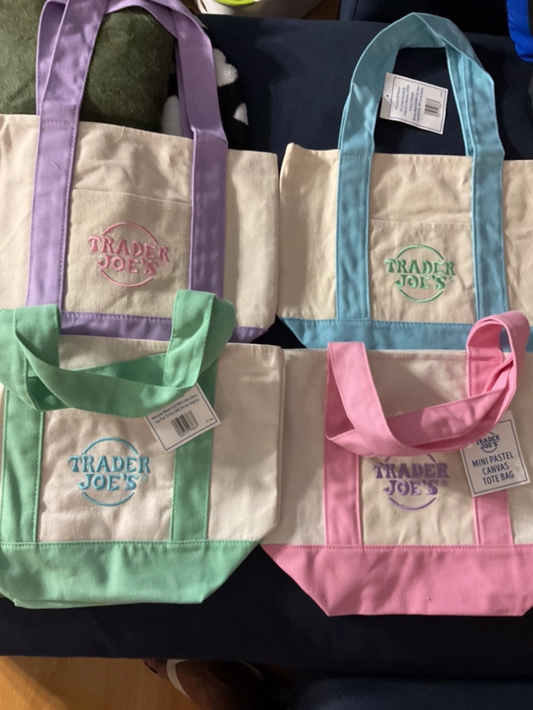 trader joe’s mini pastel canvas tote bag