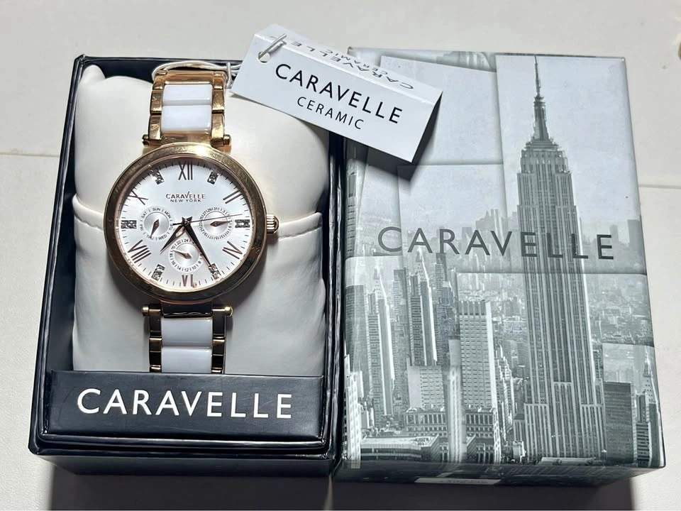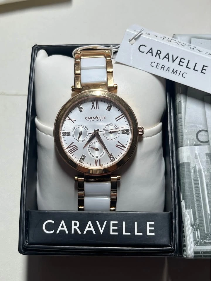 NEVER WORN Silver-white dial with rose gold-tone and crystal accents