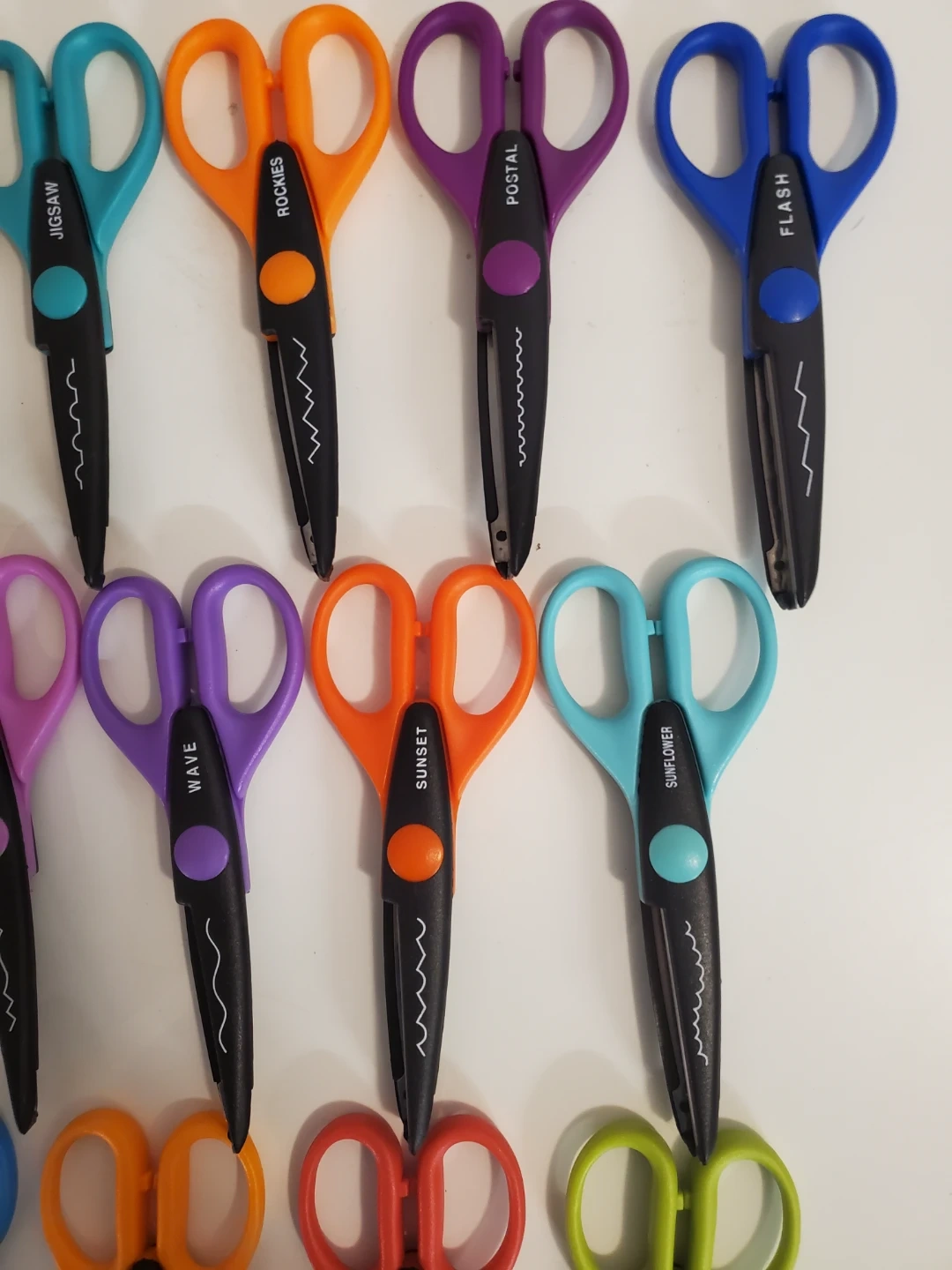Each pair has a colorful handle and the pattern name or number is often printed on the side for easy identification.Â