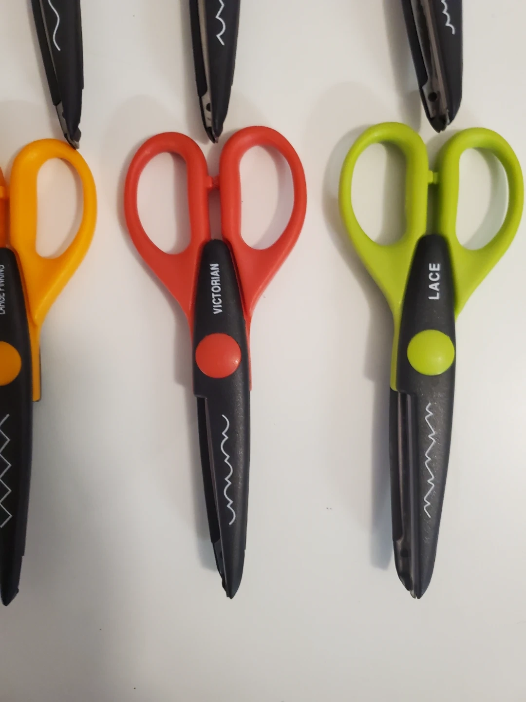 It includes 15 pairs of scissors, each with a unique cutting pattern for creating decorative edges on paper.Â