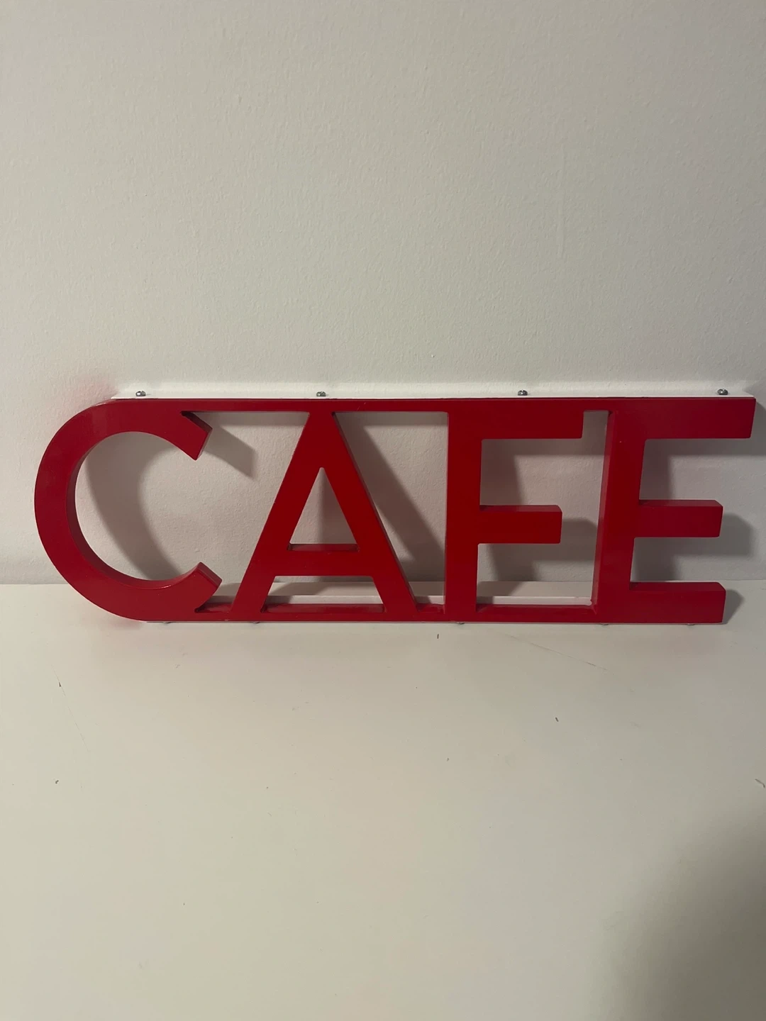 78Selling a cute red 'CAFE' sign! It's a fun piece to add to your kitchen or dining area Made of metal and wood! Pencil in photo for scale!