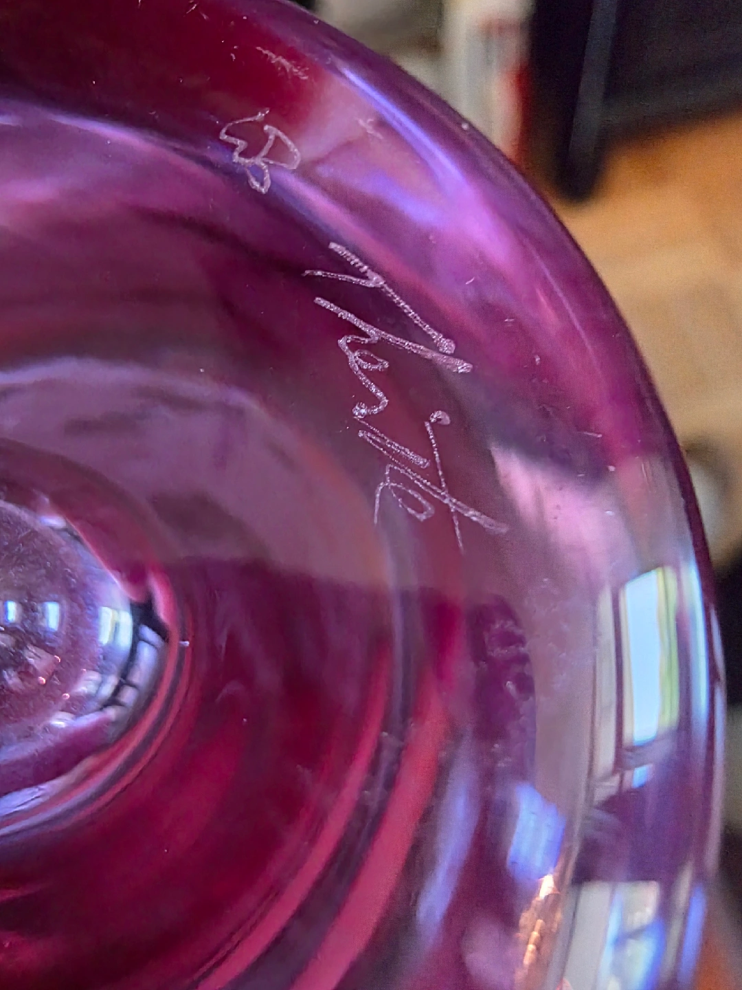14This is a Caithness amethyst alexandrite neodymium glass vase with an etched Scottish thistle design. (SIGNED) Approx 9" high Pick up Dawes Road and Danforth area Please see my other ads
