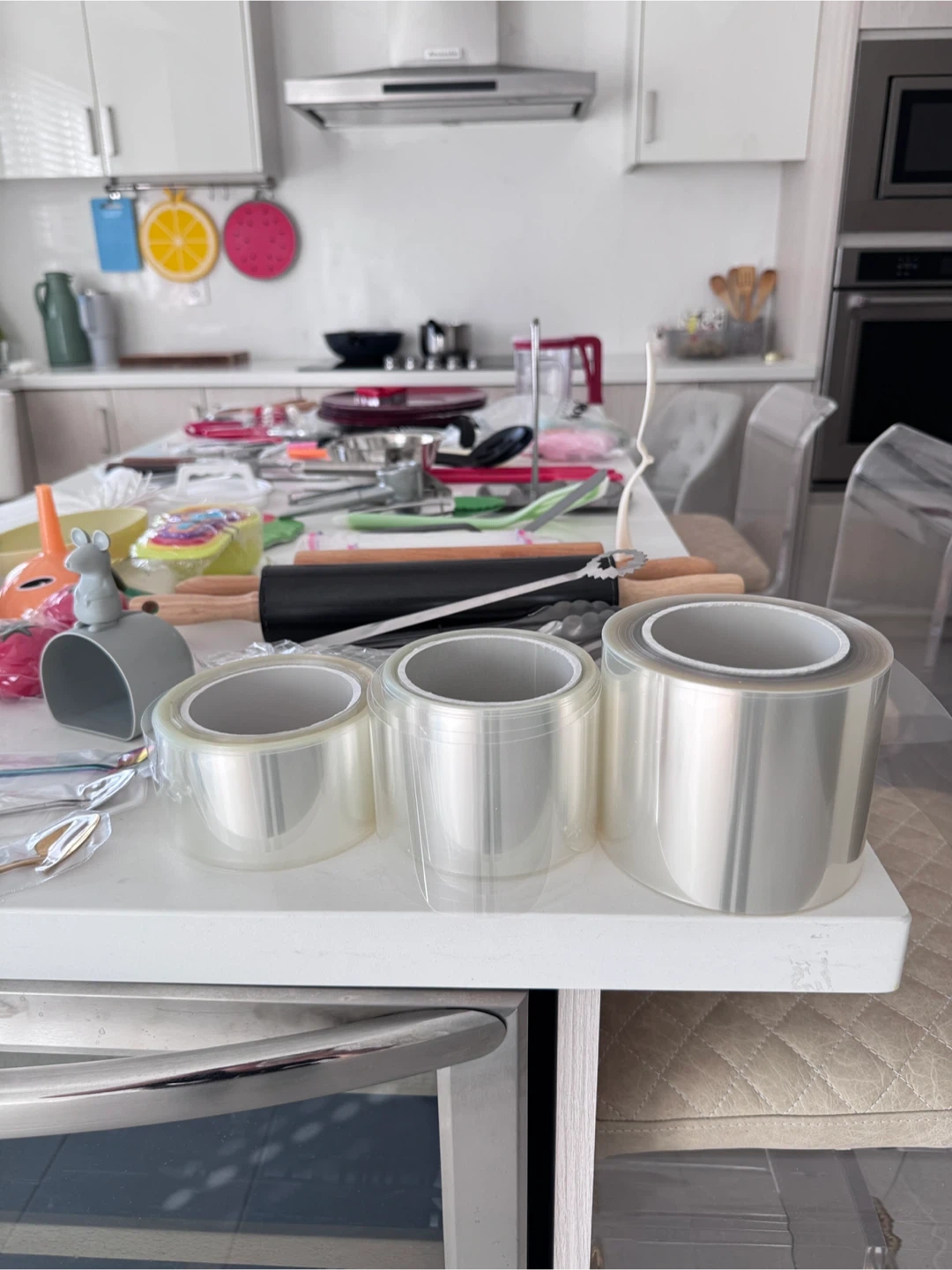 Cake collar rolls for baking! These are great for making layered cakes and desserts. They provide a clean and professional look to your creations! They come in various widths to suit different cake sizes: 6cm 8cm 10cm tall. A set of 3 for $15