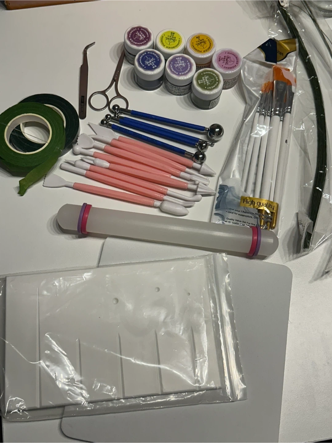 32I'm selling a cake decorating fondant tools set! This set includes a variety of tools to help you create beautiful and intricate designs on your cakes and other desserts. Most of them are brand new and never used. They are also good for clay sculpting.