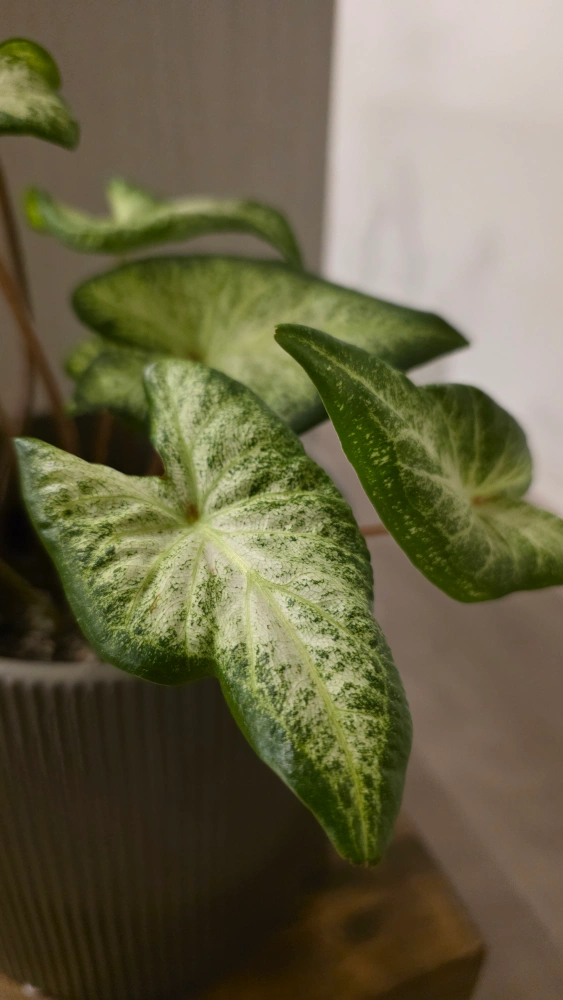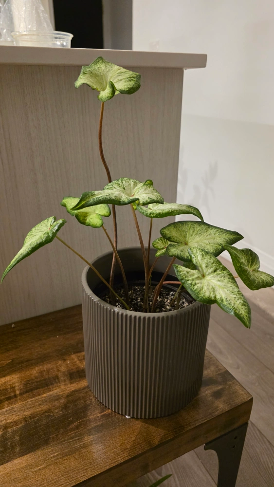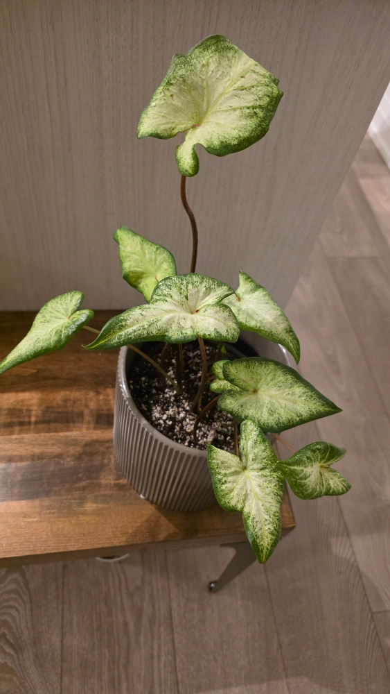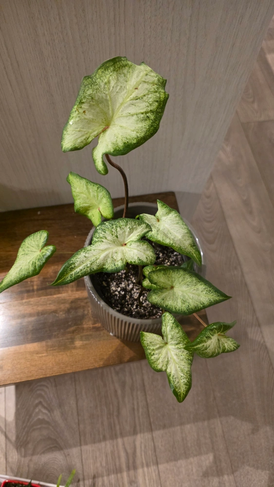 Selling a healthy caladium plant. The leaves have a beautiful variegated pattern of green and white. Nothing is wrong with it, just making some room for my new plants. Pot is not included.