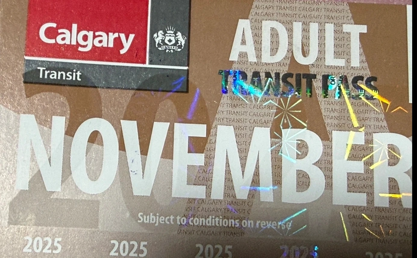 68Selling an adult Calgary Transit pass valid for November 2025, ready to use for your daily commute