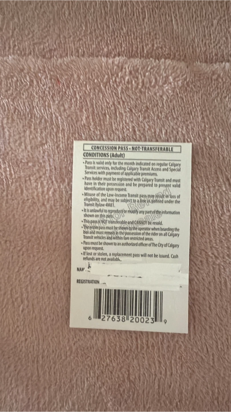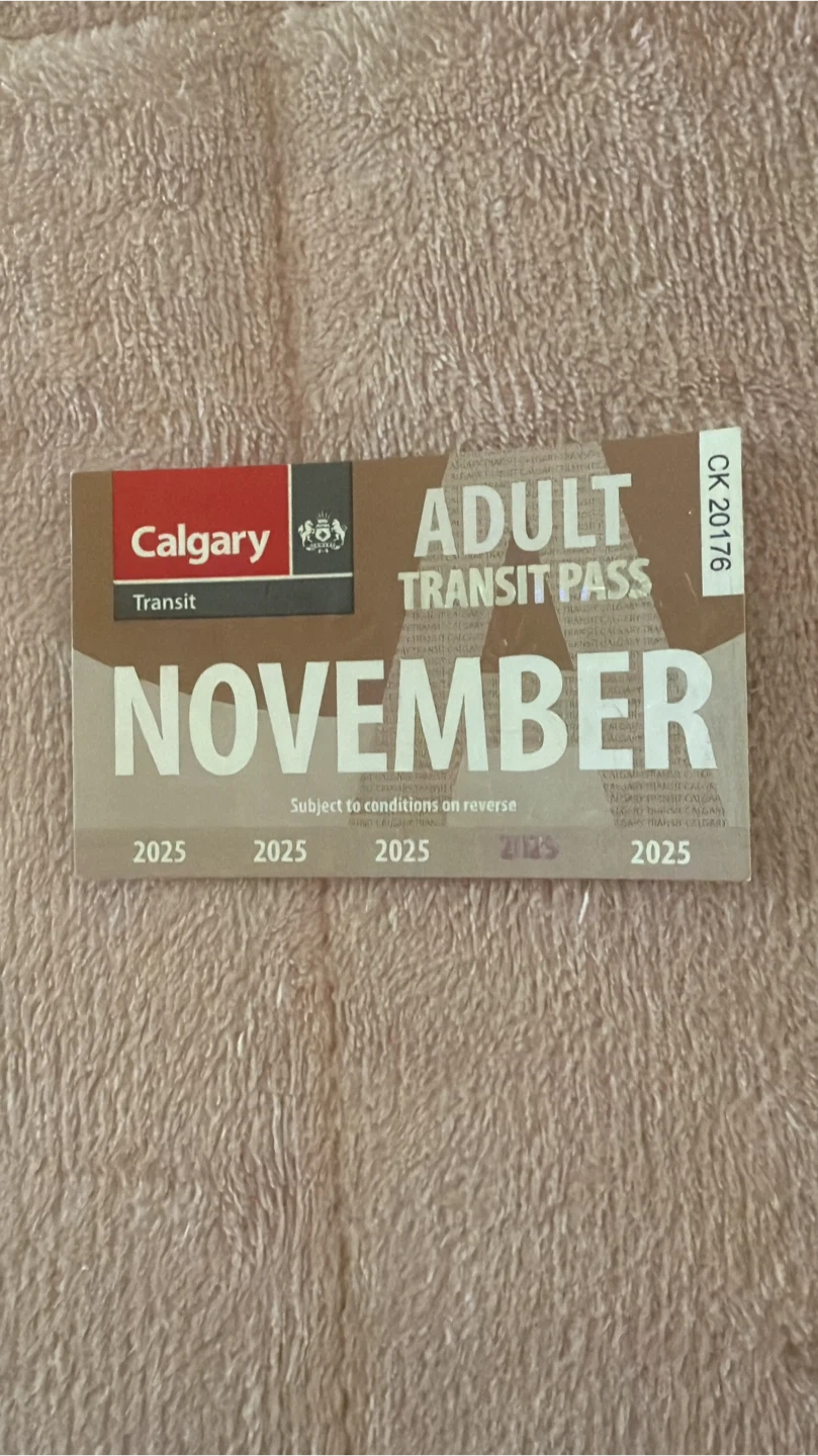 Selling an adult Calgary Transit pass valid for November 2025. It's in great condition