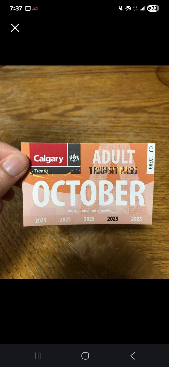 Selling a Calgary Transit Adult Transit Pass, valid for October 2025