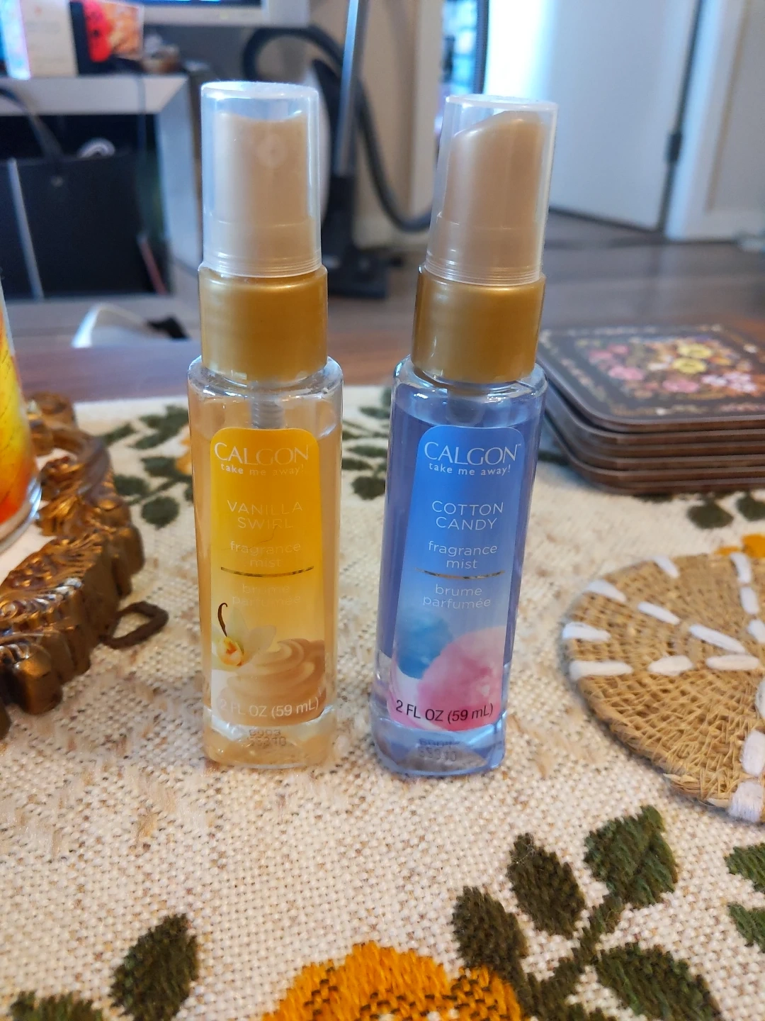 47Selling a set of Calgon Take Me Away fragrance mists! Includes Vanilla Swirl and Cotton Candy scents. Each bottle contains 2 fl oz (59 mL). $3 for both.