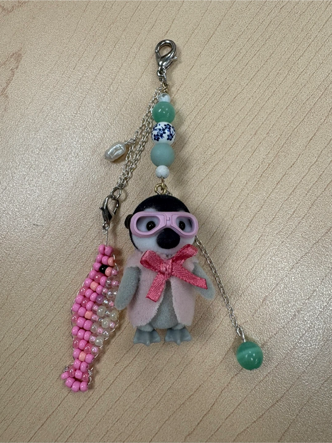 26CALICO CRITTERS 🤩 ✨handmade/custom keychain purse pal bag charms by me! 🐧 x1 pink, Penguin Baby “Pearl” *Detachable custom beaded fish charm 🩷 (by me!) Super cute! Attach to any zipper, straps, keychains, etc🙋🏻♀️