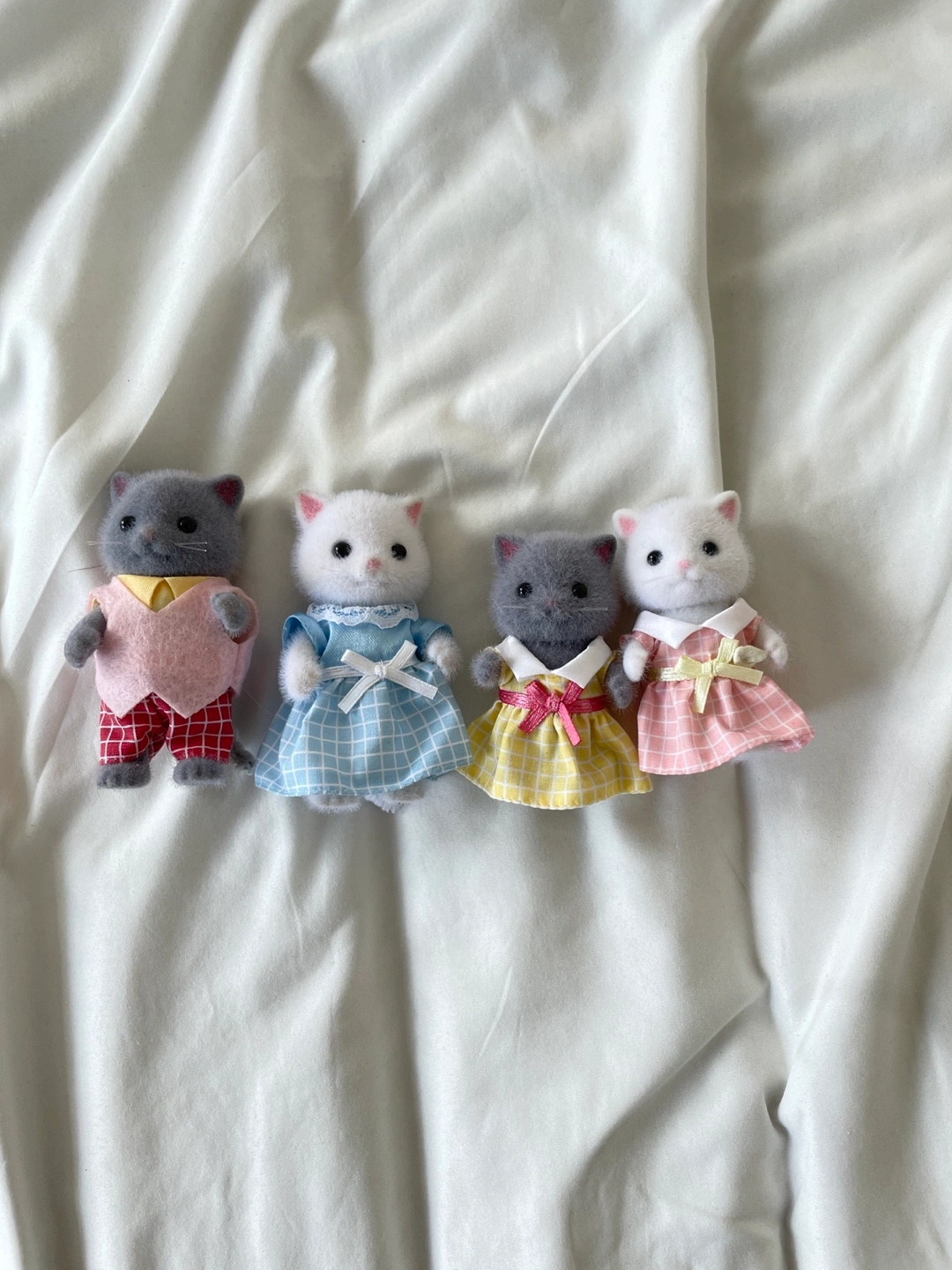 Selling a cute Calico Critters family! This set includes four adorable cat figures dressed in charming outfits.