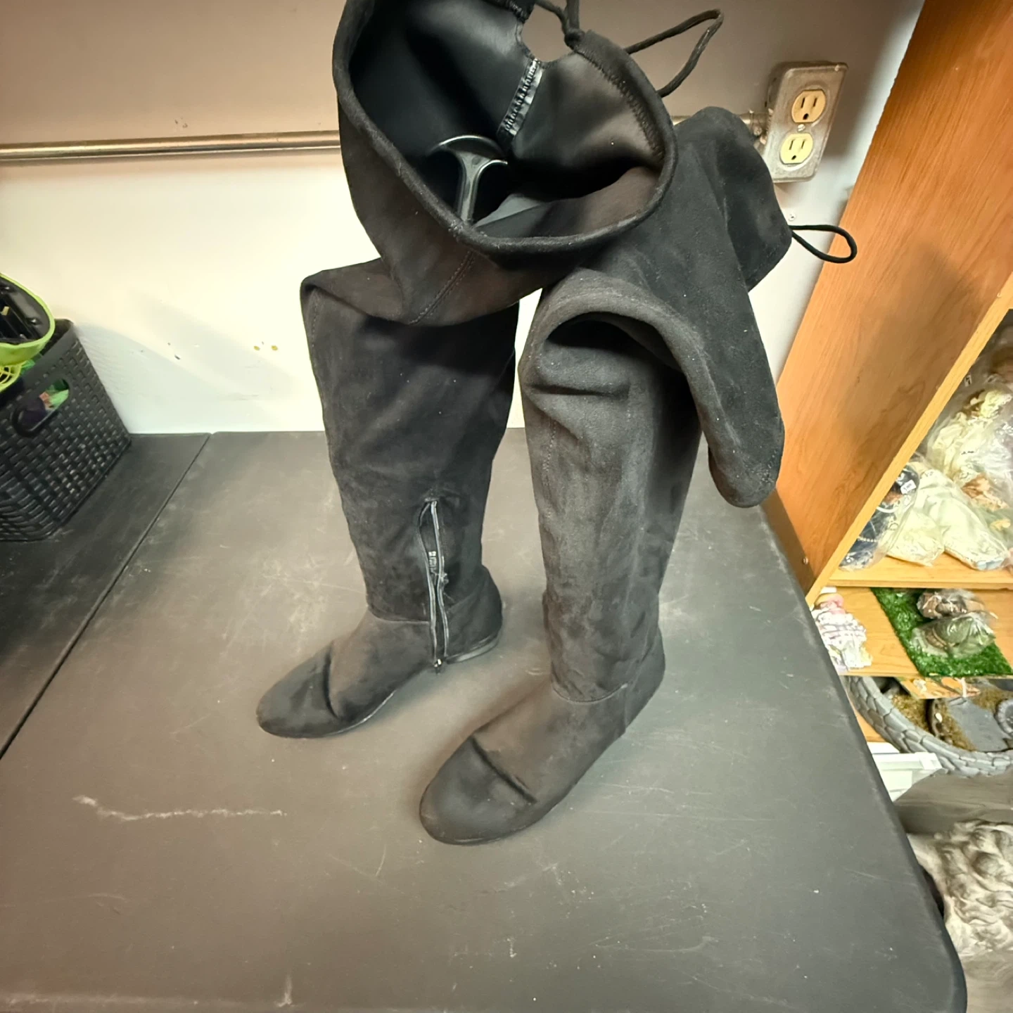 10Selling a pair of Call It Spring over-the-knee boots in black! They're a size 11 US. These boots are perfect for adding a touch of style to any outfit. They show some signs of wear, but still have lots of life left!