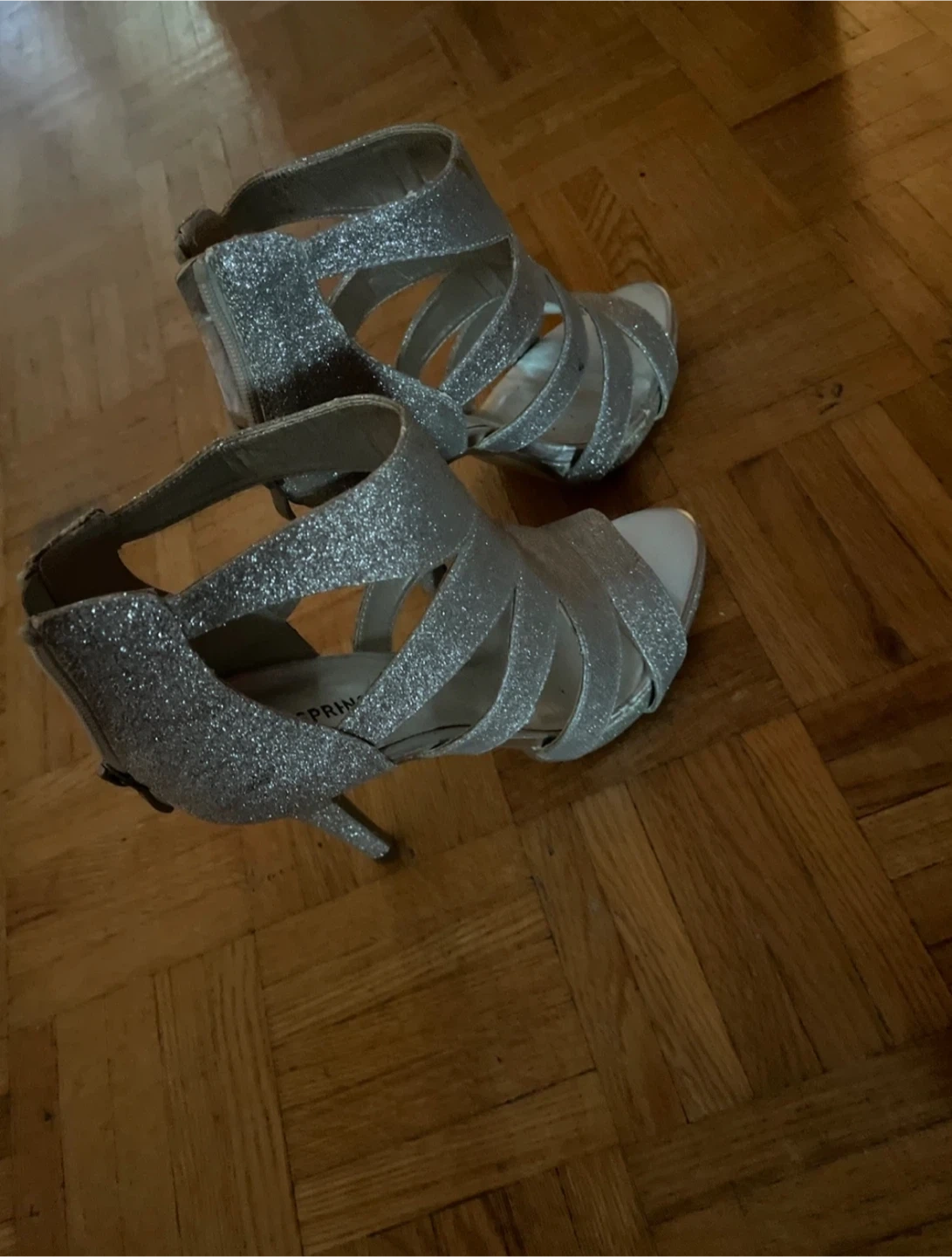 π₯ giving a free pair of Call It Spring silver heels in size 8.5 . They have a glittery finish and a unique strappy design. Perfect for a night out or any special occasion! π₯