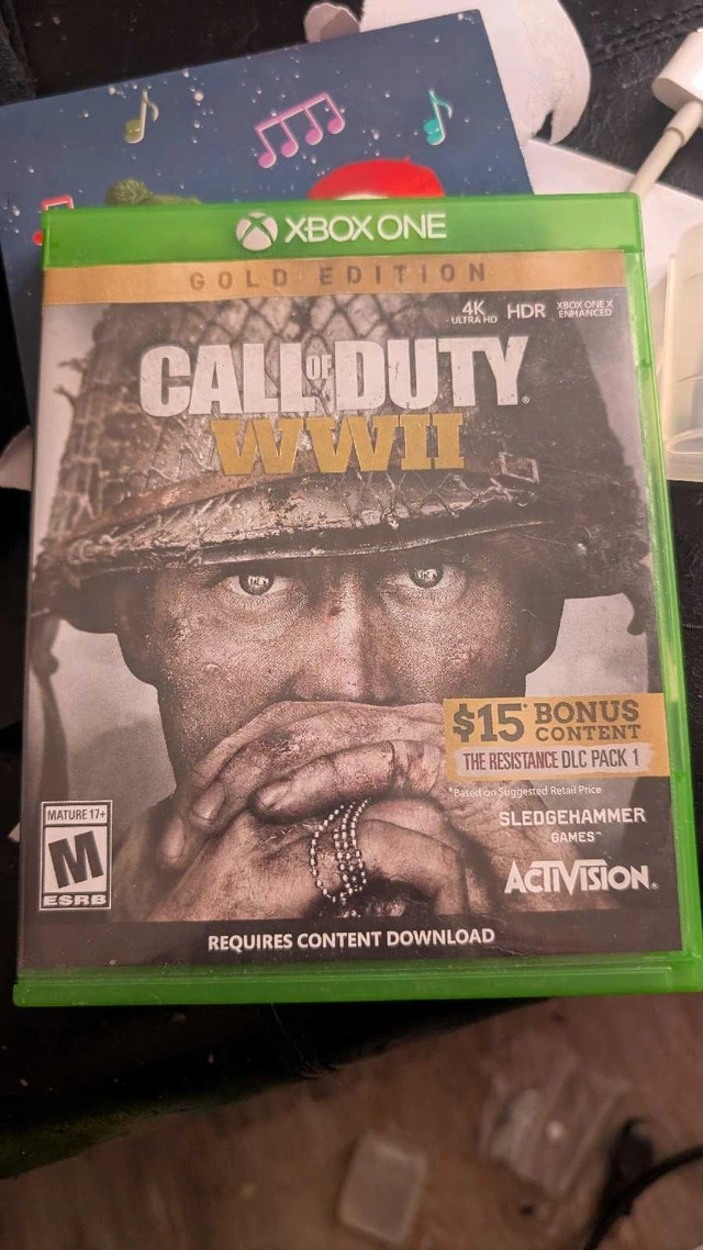 60Grab the Call of Duty WWII Gold Edition for Xbox One! This game delivers intense World War II action with stunning 4K HDR graphics. It's in good condition and ready for a new player to experience thrilling battles and engaging storylines. It comes with the original case.