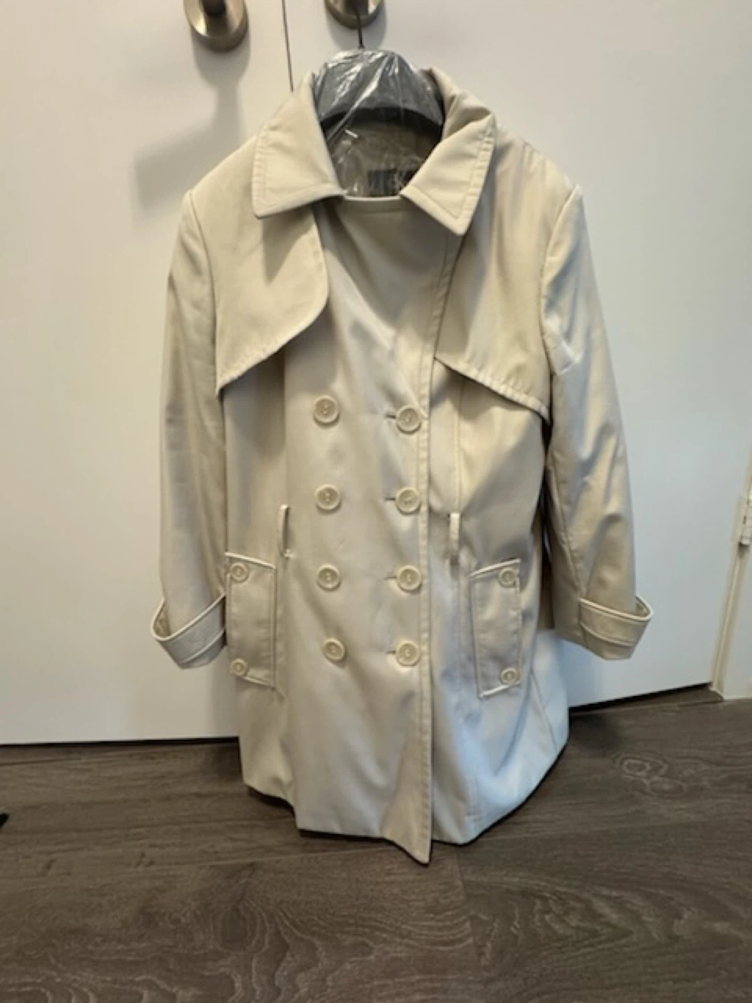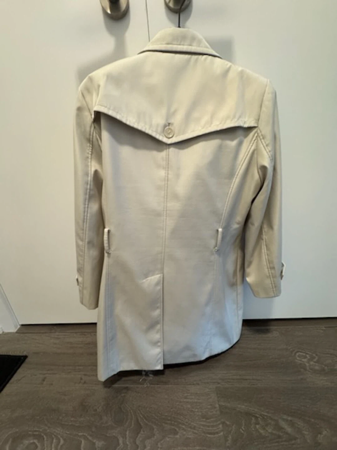 Selling a Calvin Klein trench coat in a lovely beige colour. It's a size medium and in great condition. There’s some small staining and tears (in the photos).