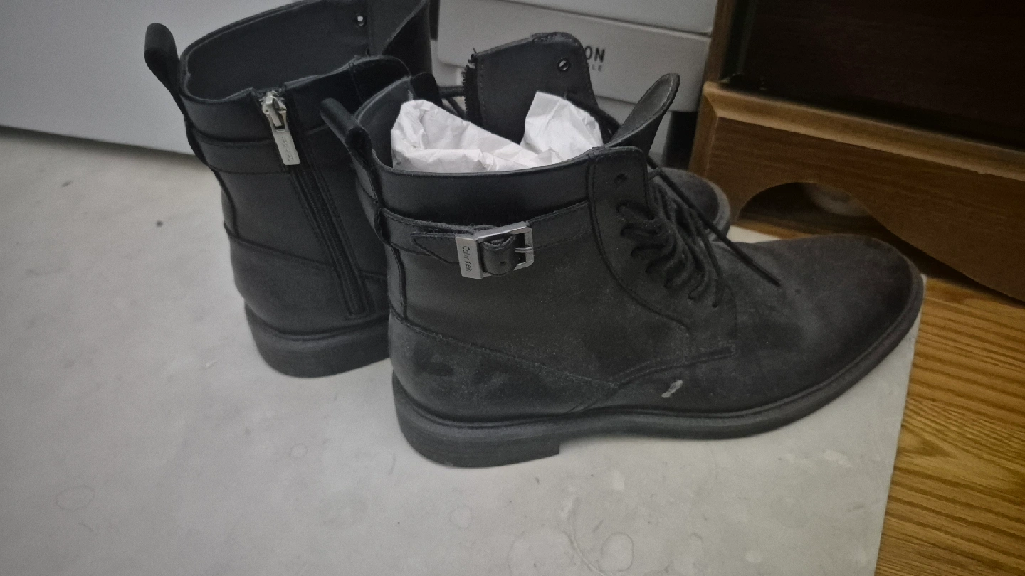 10Selling a pair of Calvin Klein black boots in size 11. They're in good condition and ready for a new home! Bought these and never worn them sat in my room and literally collected dust. I originally paid 70 plus tax and shipping selling for 35 firm!
