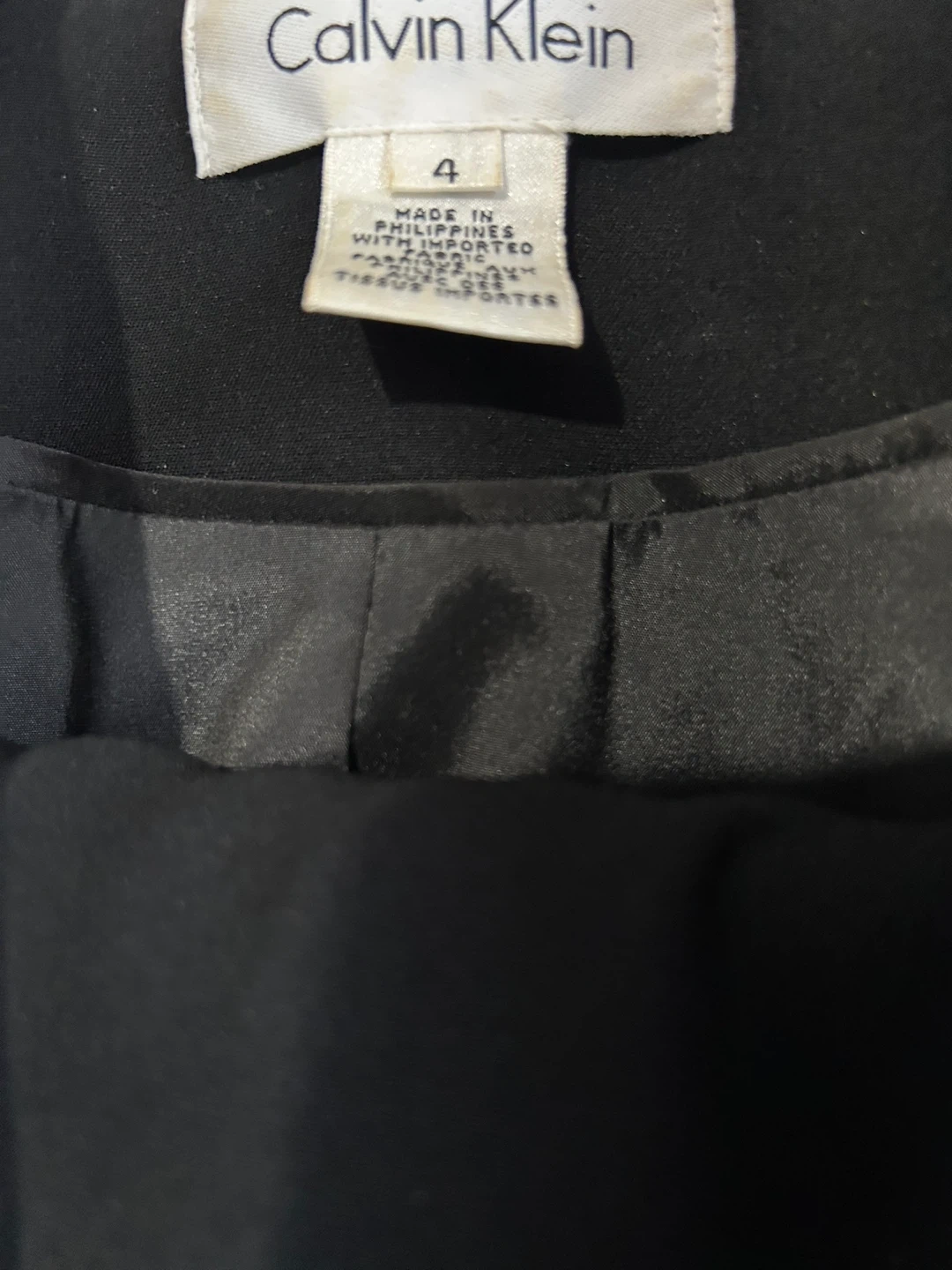 Selling a Calvin Klein suit in great condition! This classic black suit is a size 4. It's perfect for work or special occasions. Feel free to message me with any questions! Hardly used a few times. Just been a year since the purchase.