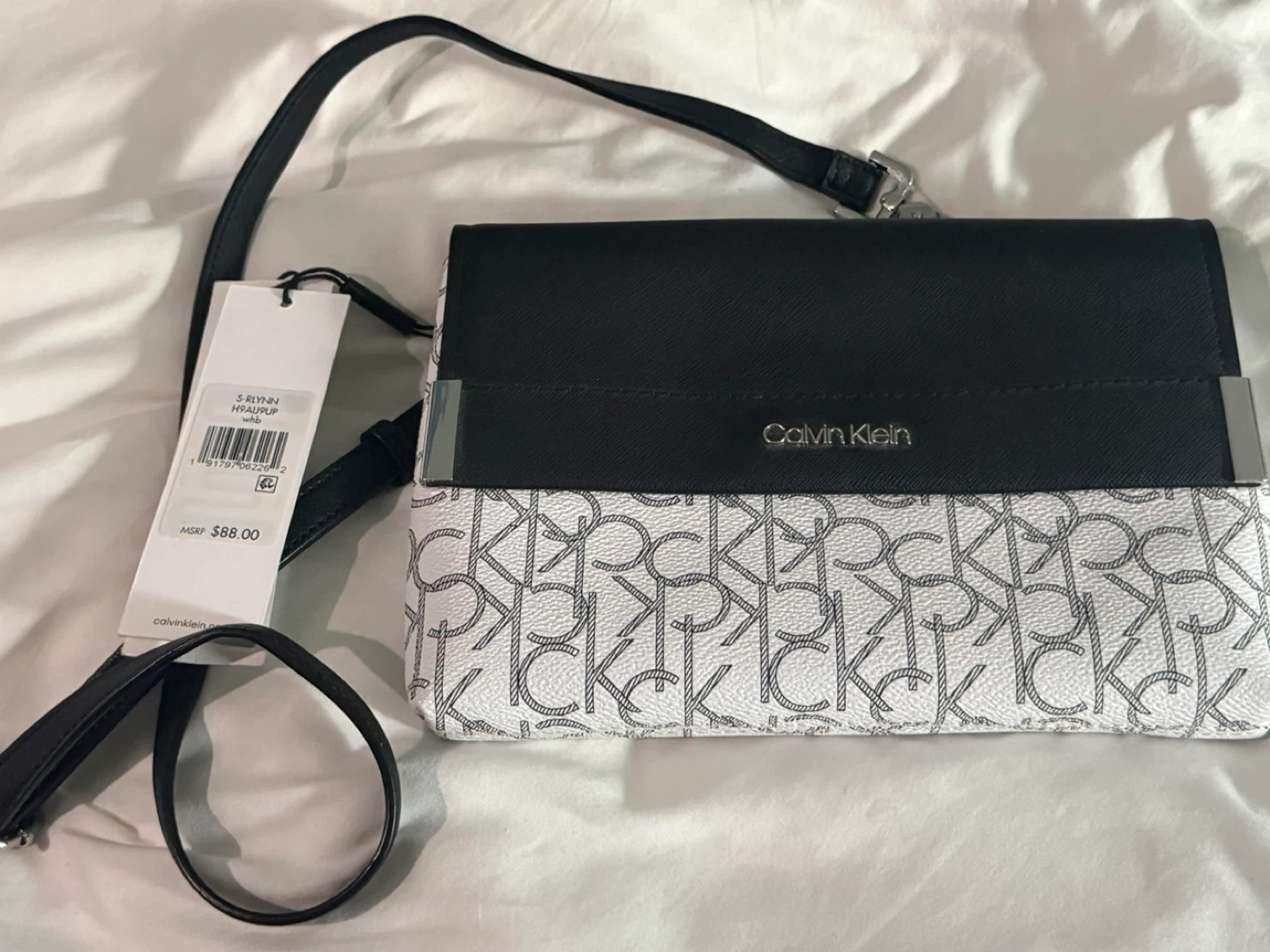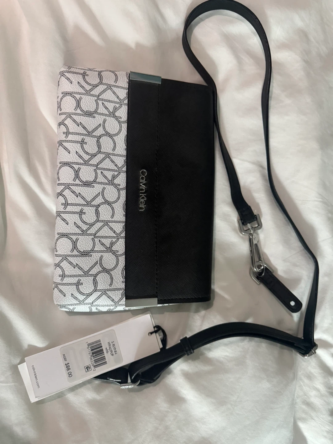 1000+Brand new Calvin Klein crossbody/belt bag! It's a stylish black and white colour, perfect for everyday use. Convertible to clutch Cost $88.00 USD + tax