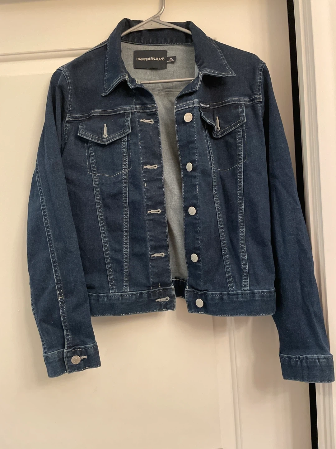 267Selling a Calvin Klein denim jacket in size small! It's a classic dark wash colour and in great condition.