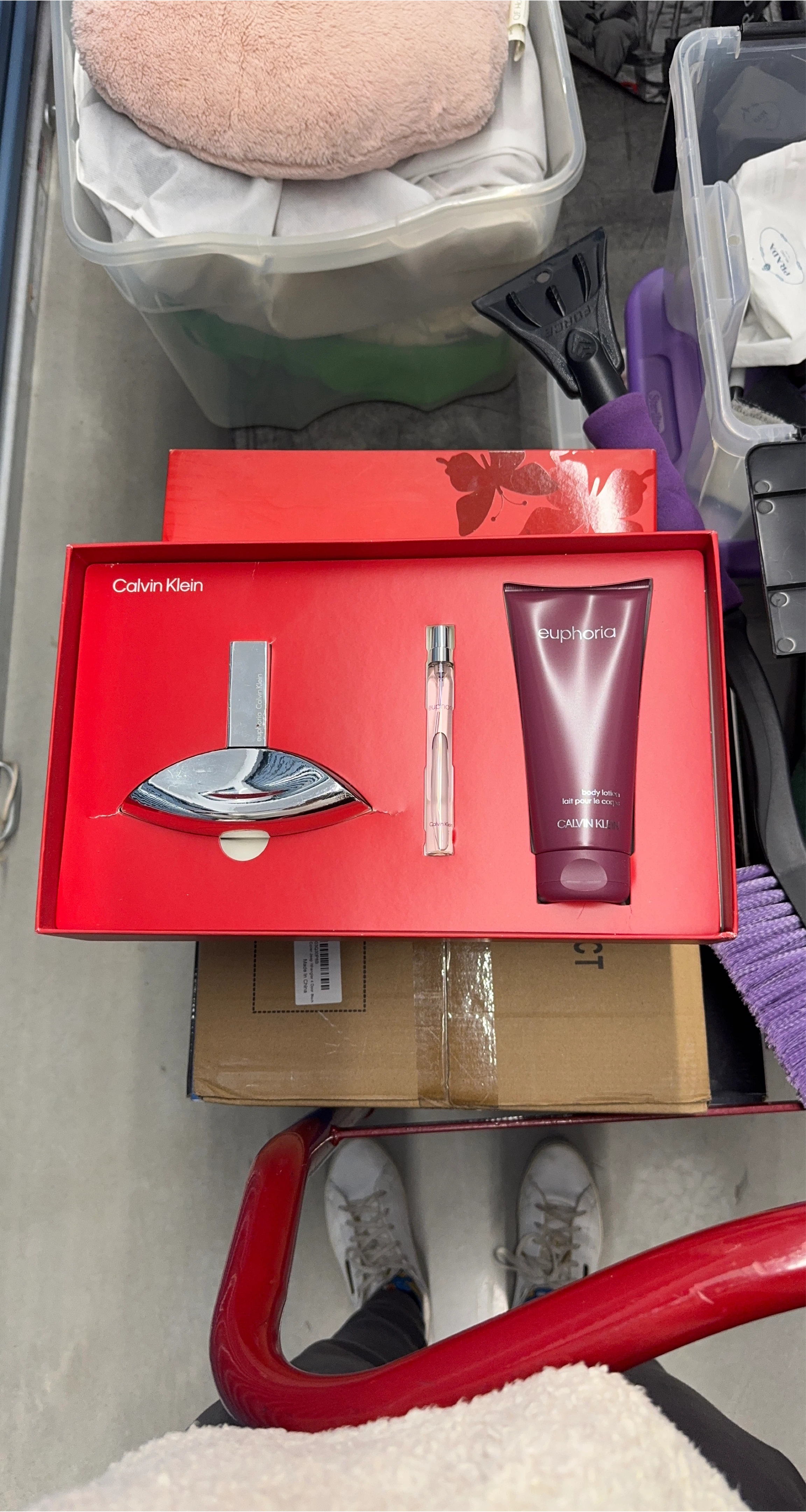 125Selling a Calvin Klein Euphoria perfume set, which includes the perfume, a travel-size spray, and body lotion! The set comes in its original box, making it perfect as a gift or a treat for yourself