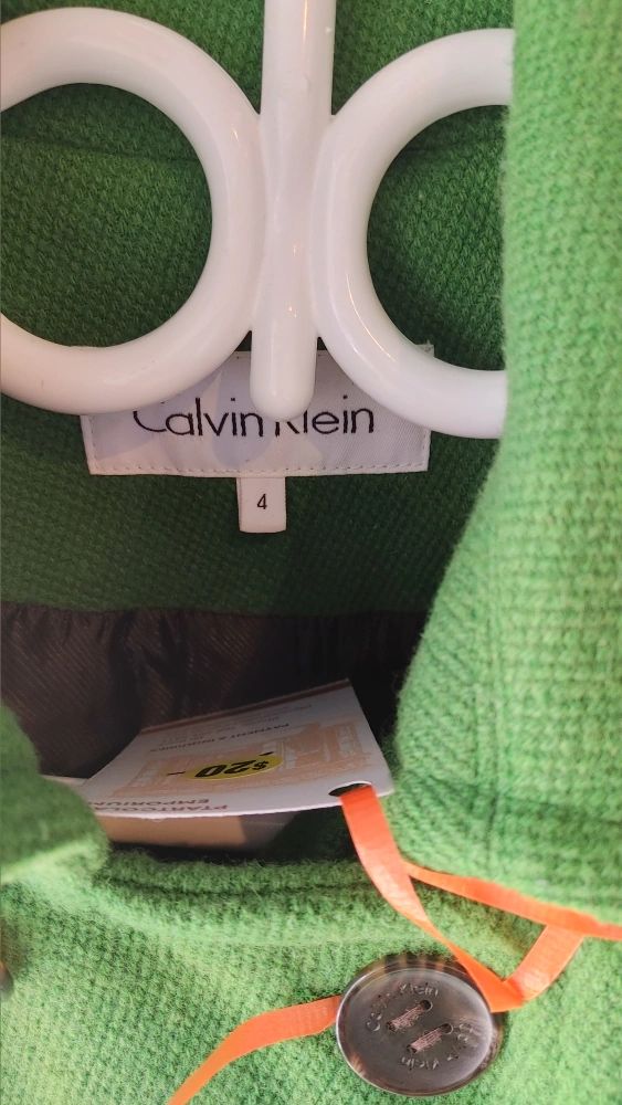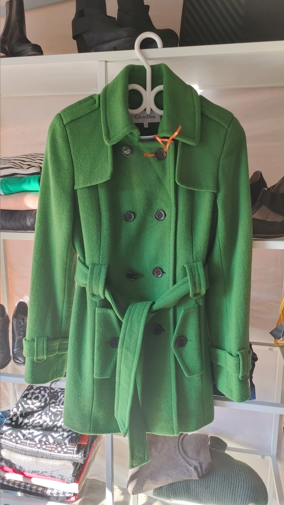 Selling a cute Calvin Klein trench coat in a lovely green colour! It's a size 4 and in great condition. Perfect for spring or fall weather! Real wool so even good for winter with sweater.