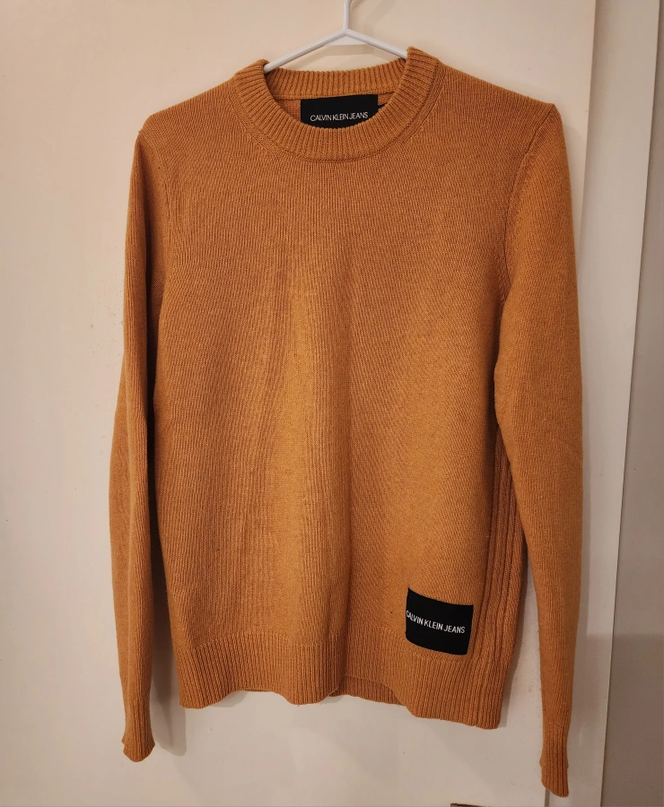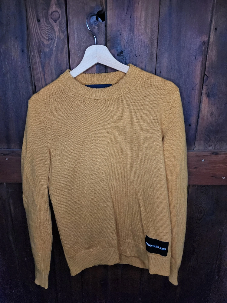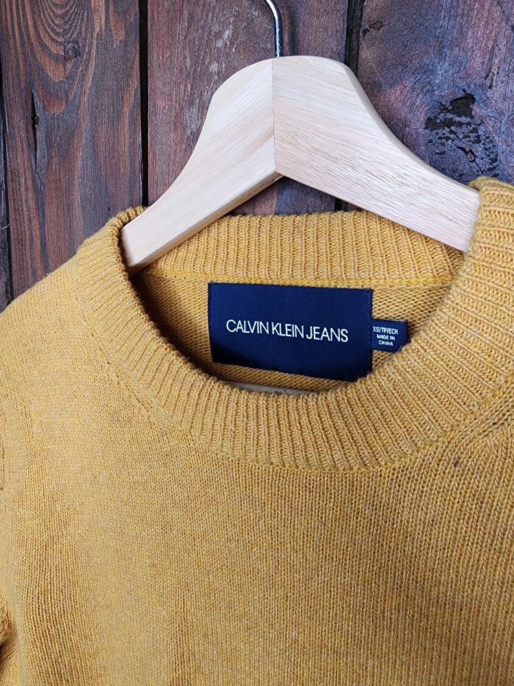 Calvin Klein Jeans long sleves sweater in mustard yellow. Soft knit material. Great condition, only worn once as wardrobe for a short film.