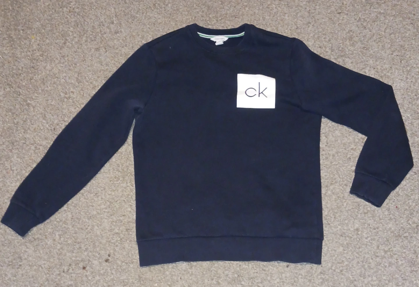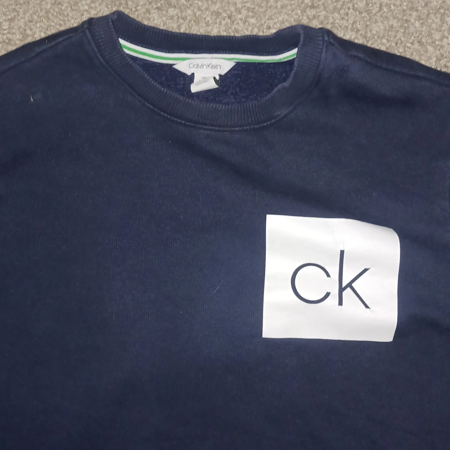 26Selling a Calvin Klein crewneck sweatshirt in navy blue! It features the 'ck' logo on the front. Perfect for casual wear and layering