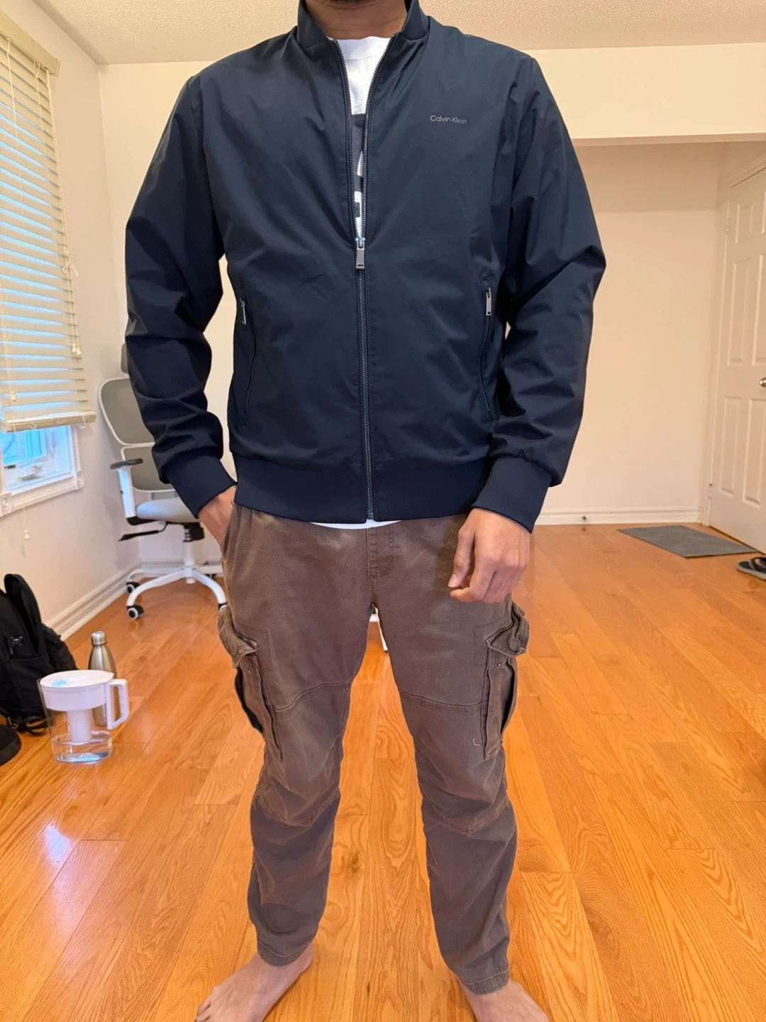 10Selling a Calvin Klein bomber jacket in navy blue. It's in great condition and perfect for layering. A stylish and versatile piece for your wardrobe! Only worn 2 times, selling because size is not perfect for my body.