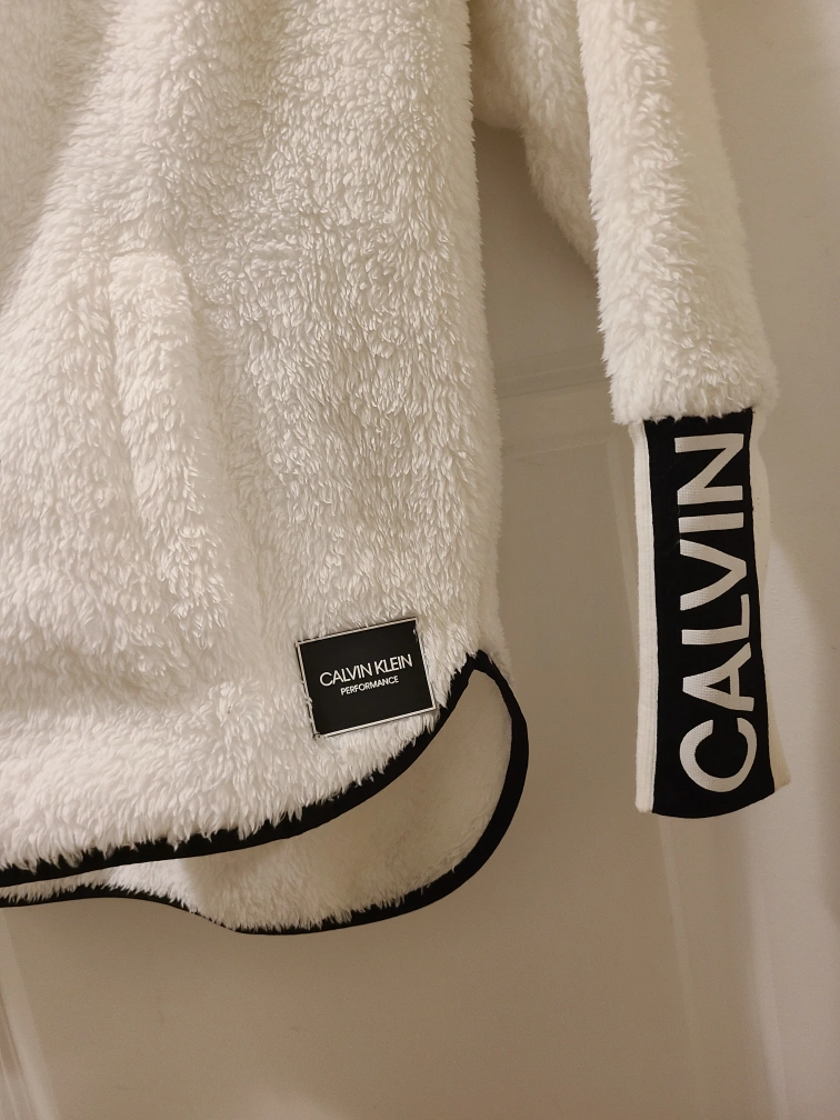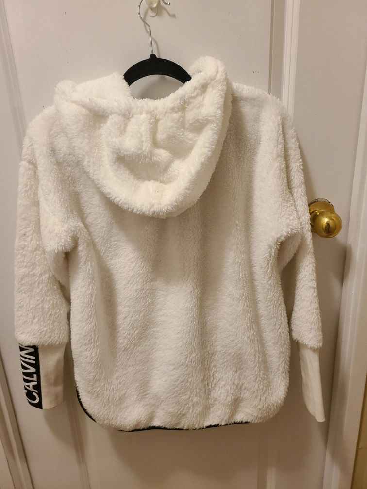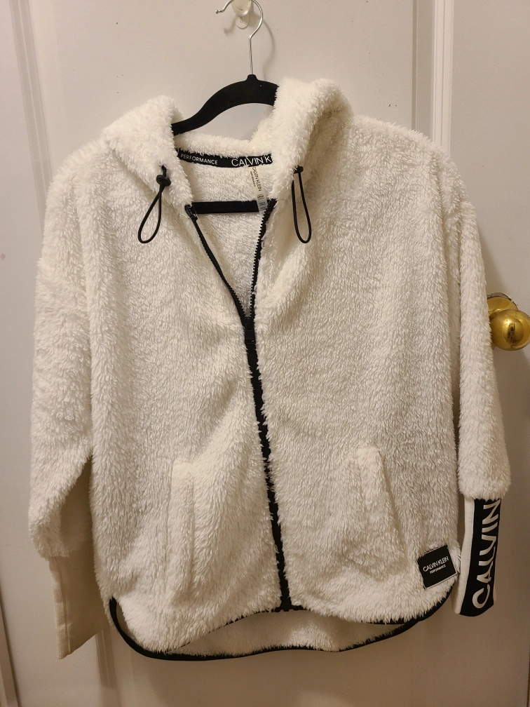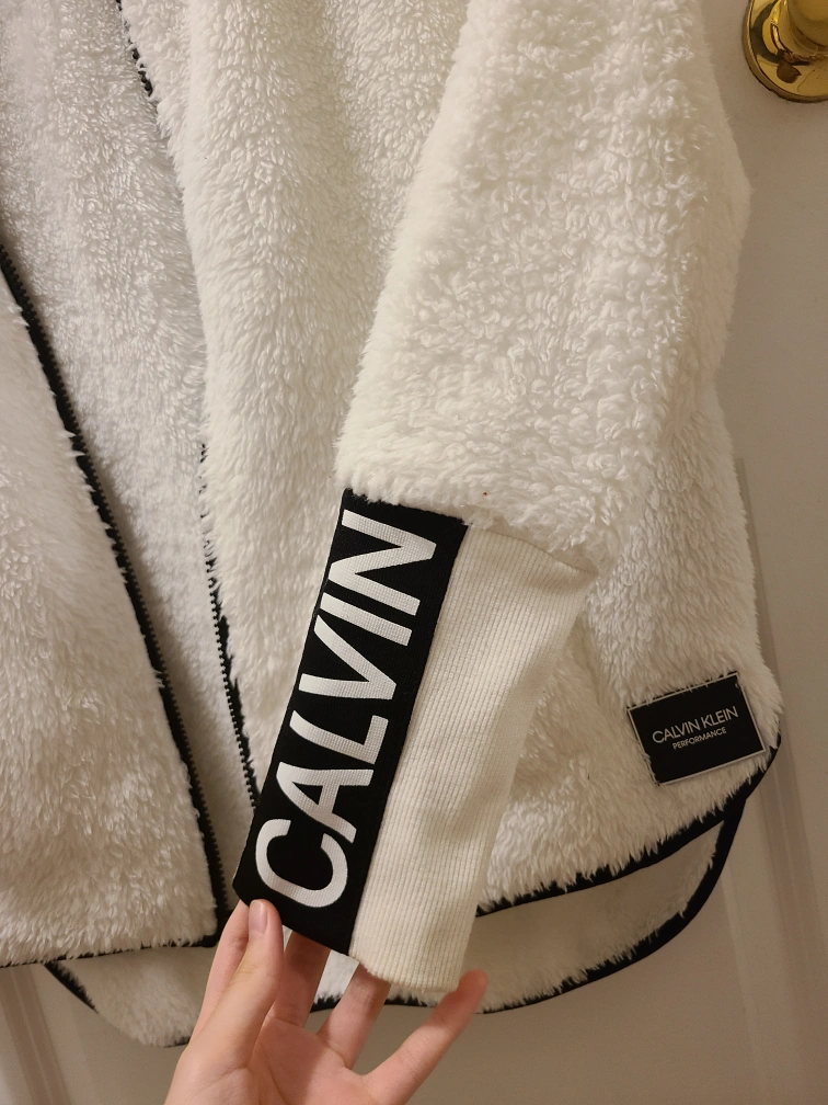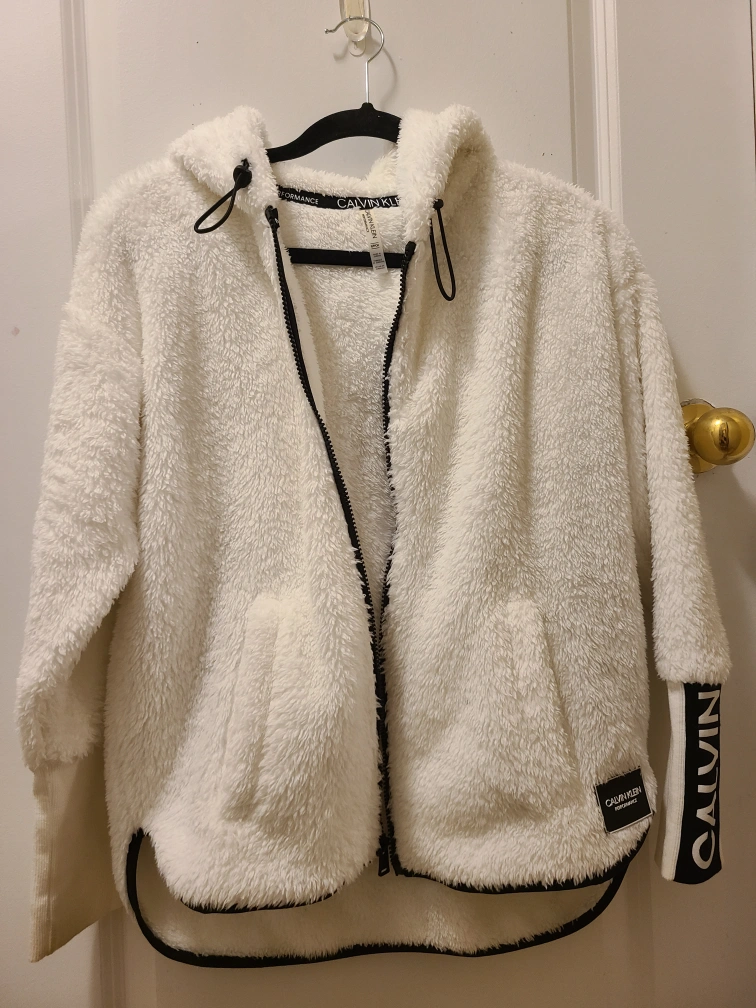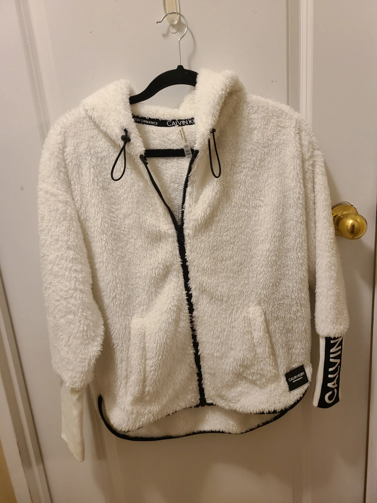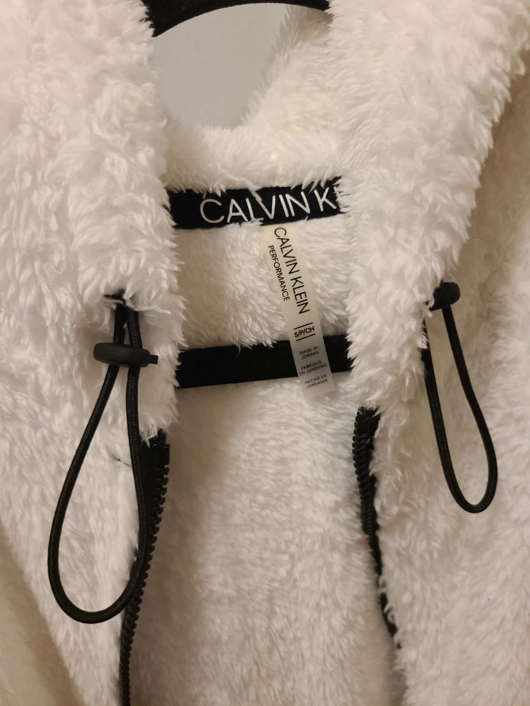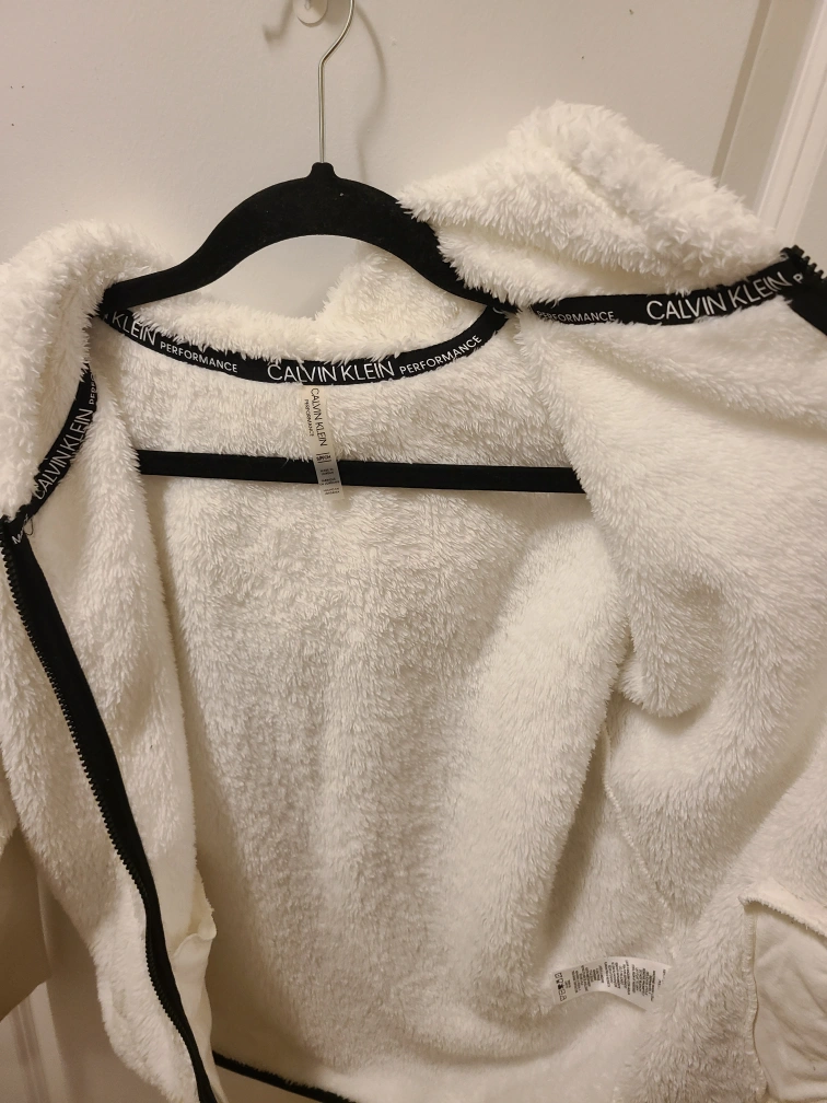 Cozy up in this Calvin Klein fleece hoodie! It's a stylish white zip-up.