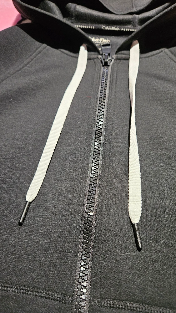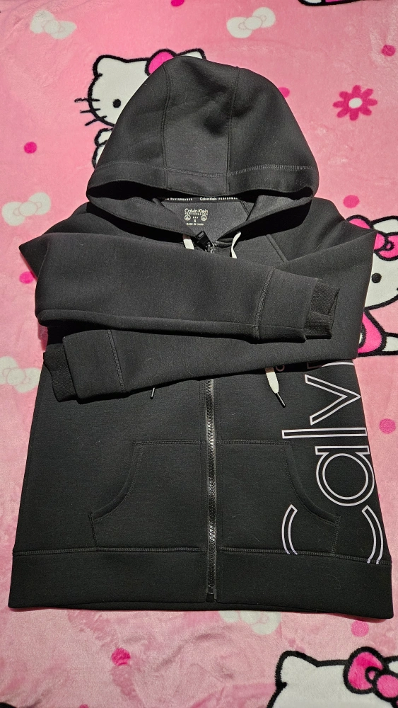 Selling a Calvin Klein Performance zip-up hoodie in size small! It's black and features the Calvin Klein logo on the side. Perfect for workouts or casual wear!