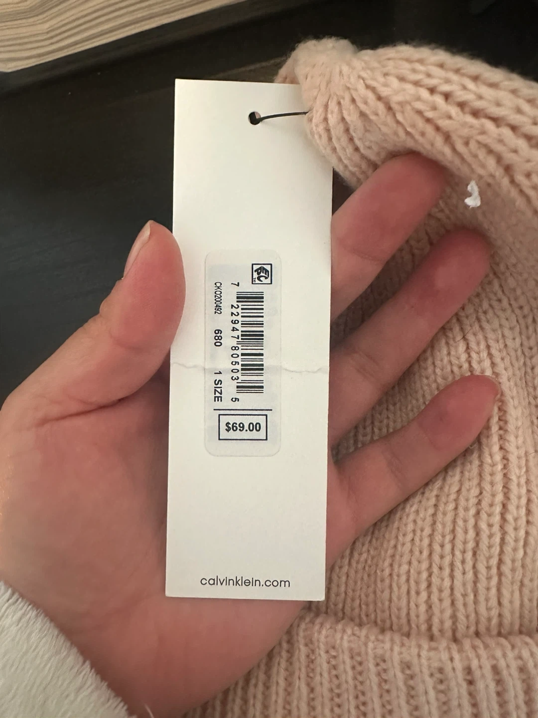 219I'm selling a brand new Calvin Klein knit beanie! Still with tag. This one is a lovely shade of pink and is one size fits all. It's made of 53% polyester, 41% nylon, and 6% wool. Originally bought for $69. Pick up Brentwood concord.