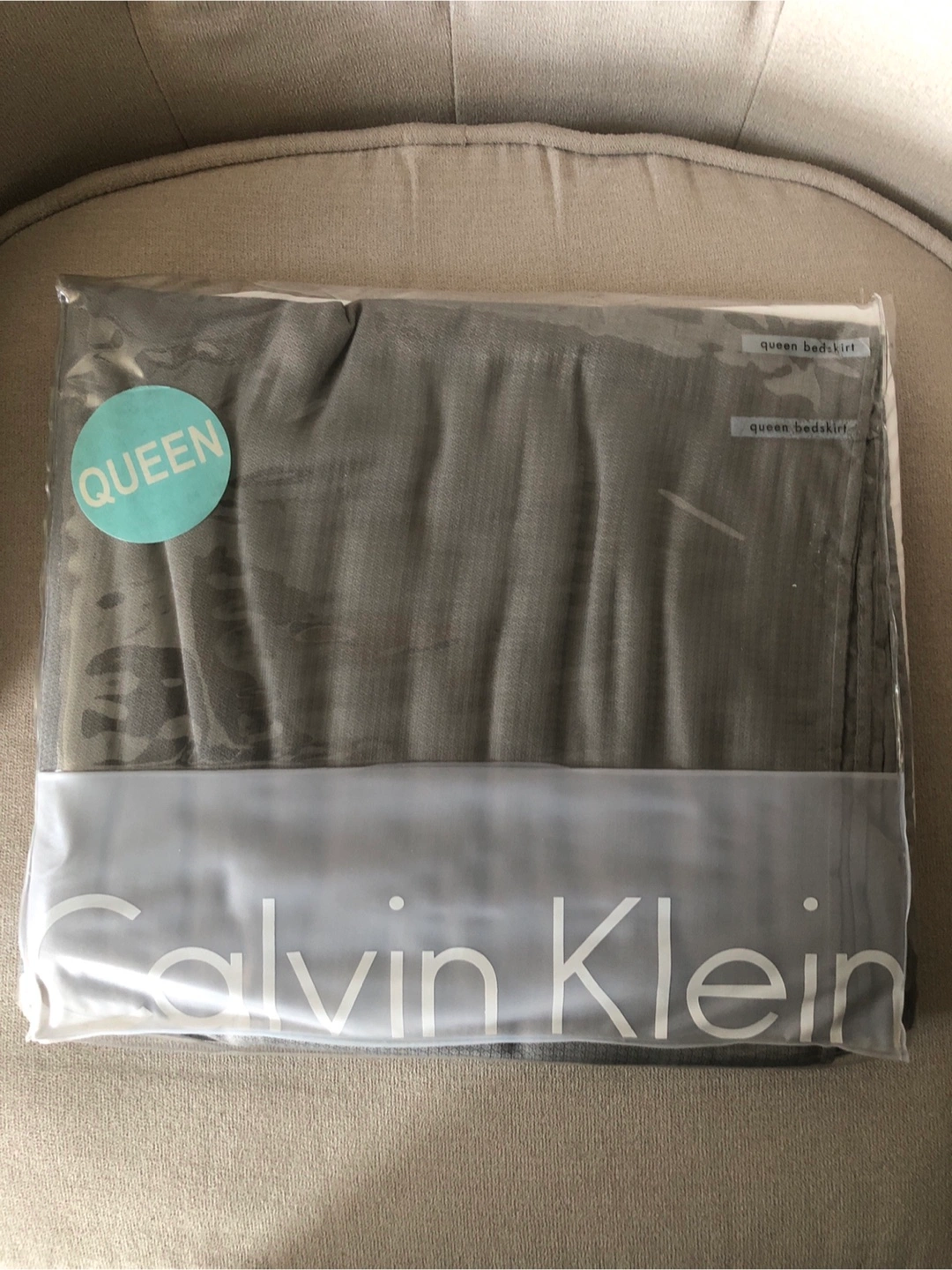 66Selling a brand new Calvin Klein Queen Bedskirt in ash colour. It's still in the original packaging. The original price was $100.00. It's a small diamond design.