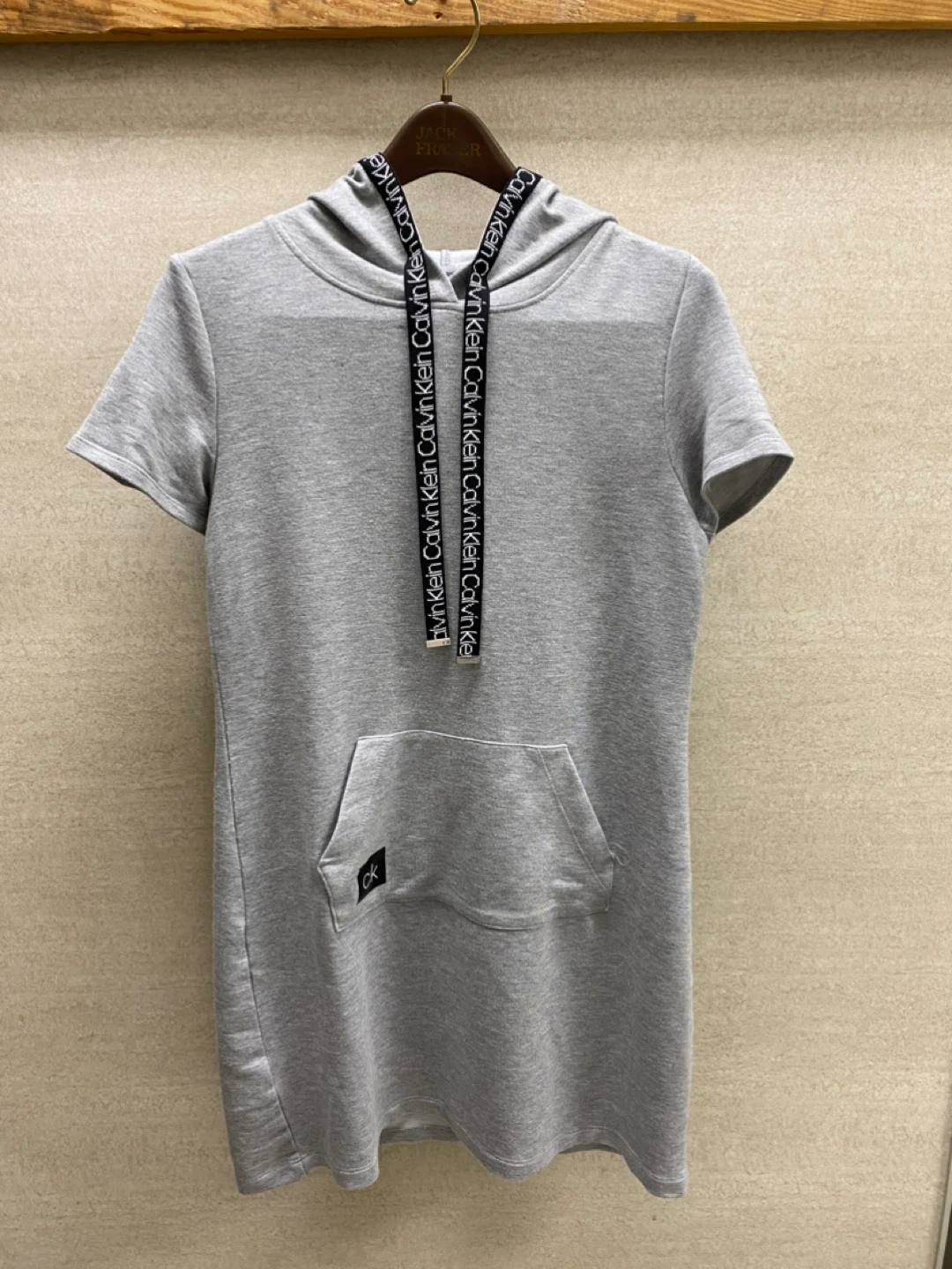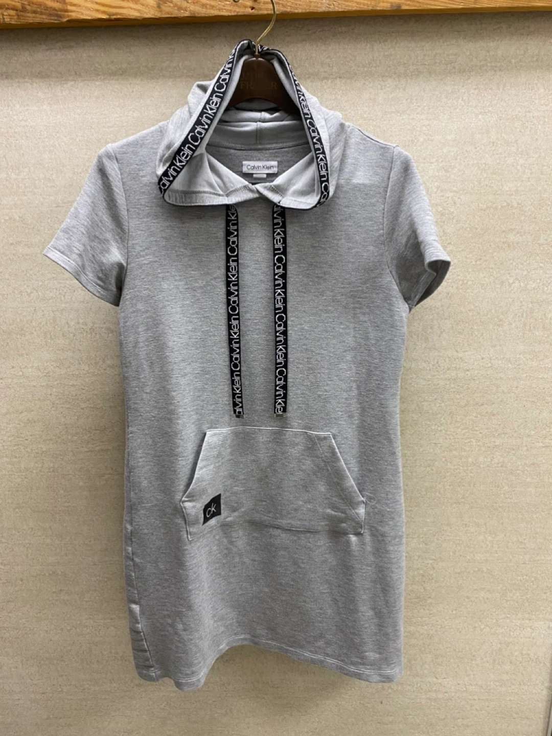 102Calvin Klein Soft Grey Hoodie Dress Short Sleeves Size - Small Like New Condition 💯 $30 🇨🇦 Please follow my page ➡️ Thrift Happens YXE for more cool listings 😎 Thanks! 🫶 B1