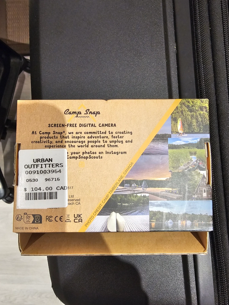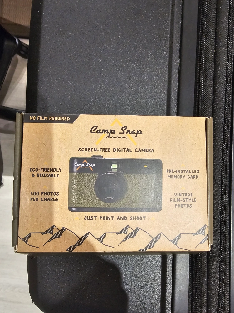Selling a Camp Snap screen-free digital camera! It's eco-friendly and reusable. It comes with a pre-installed memory card and allows for 500 photos per charge. Just point and shoot! Originally bought for $104 CAD at Urban Outfitters