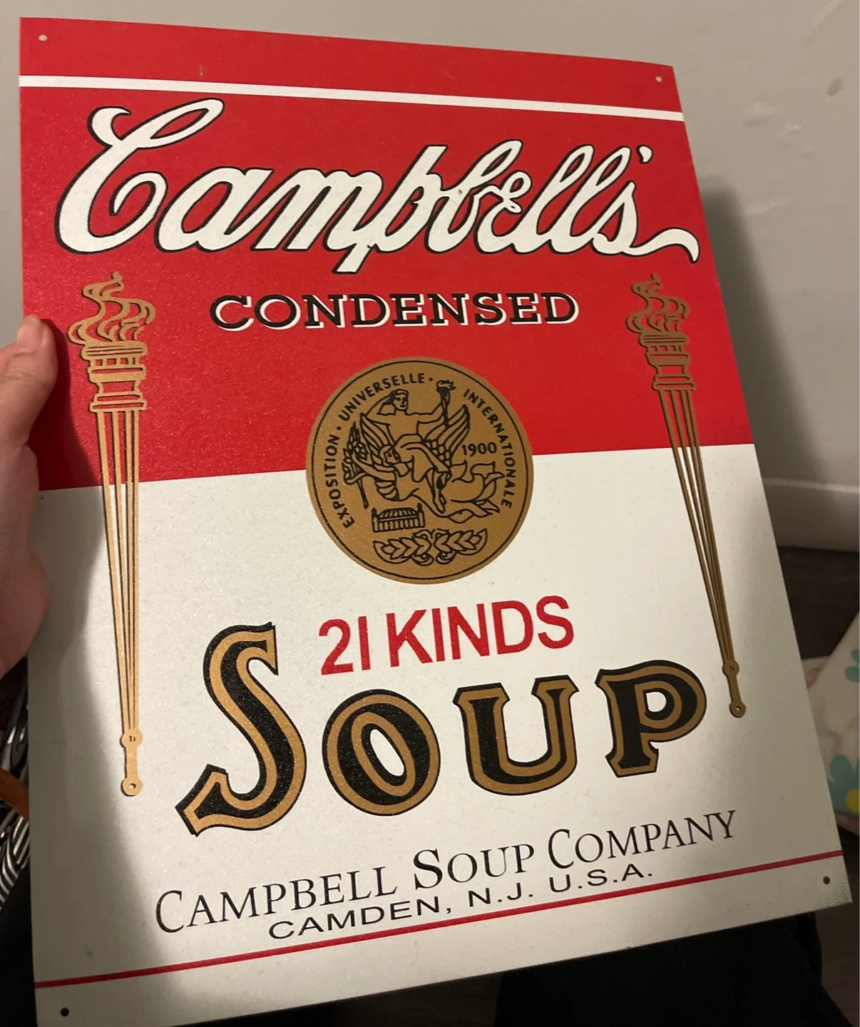 Campbell’s Soup Retro Tin Sign – Collector’s Piece! A nostalgic nod to one of America’s most recognizable brands! This Campbell’s Condensed Soup metal sign features the iconic red and white design, inspired by the timeless 21 Kinds label from Camden, NJ. Perfect for kitchens, cafés, or anyone who loves vintage Americana style. ✨ Excellent condition — ready to hang or display!