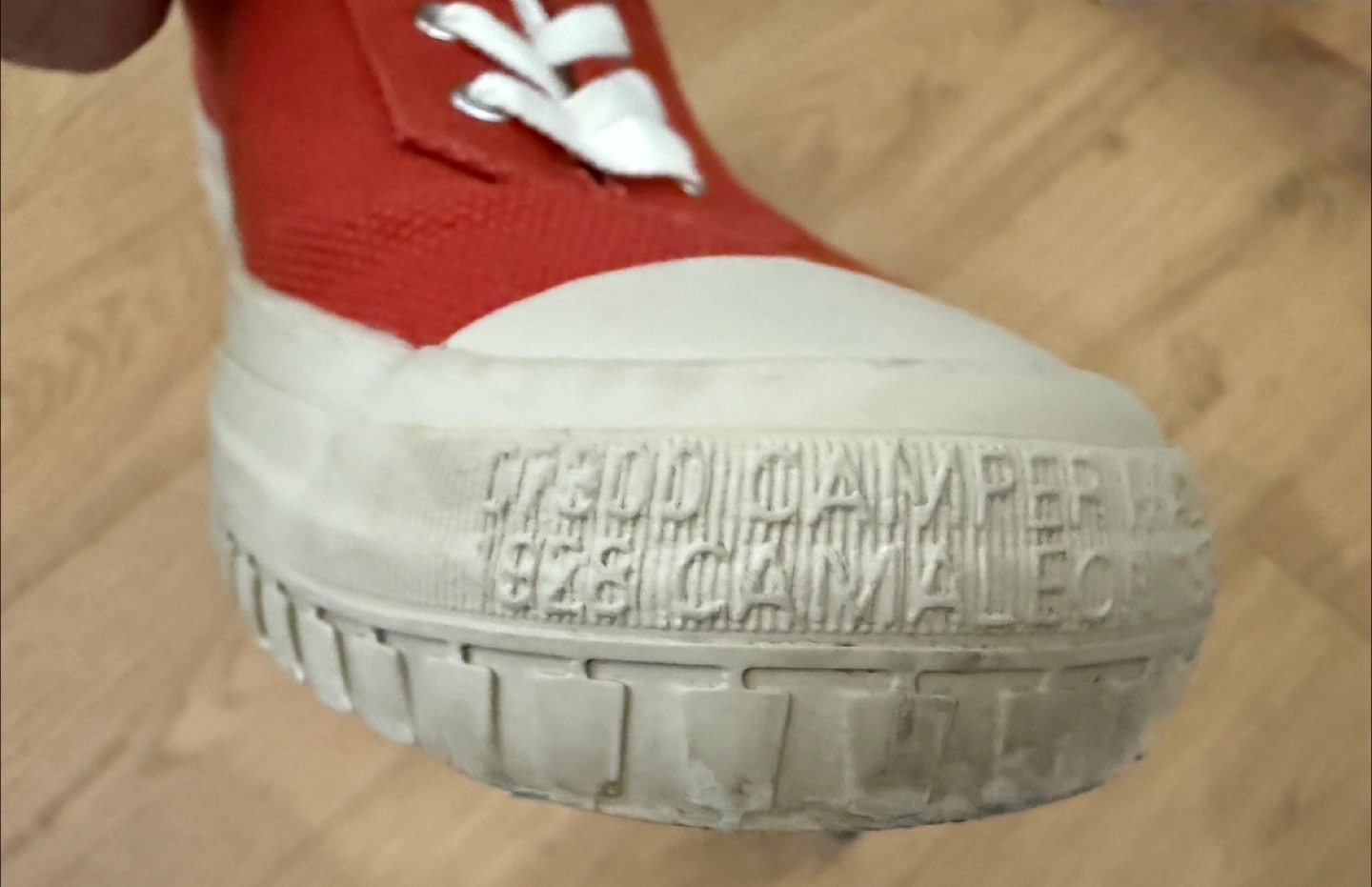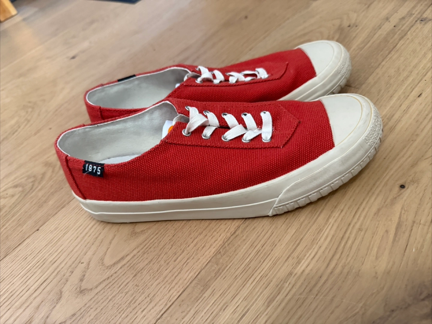 10CAMPER Chameleon 1975 Cinnamon Red canvas low-top sneakers. White soles and laces. Lightly worn.