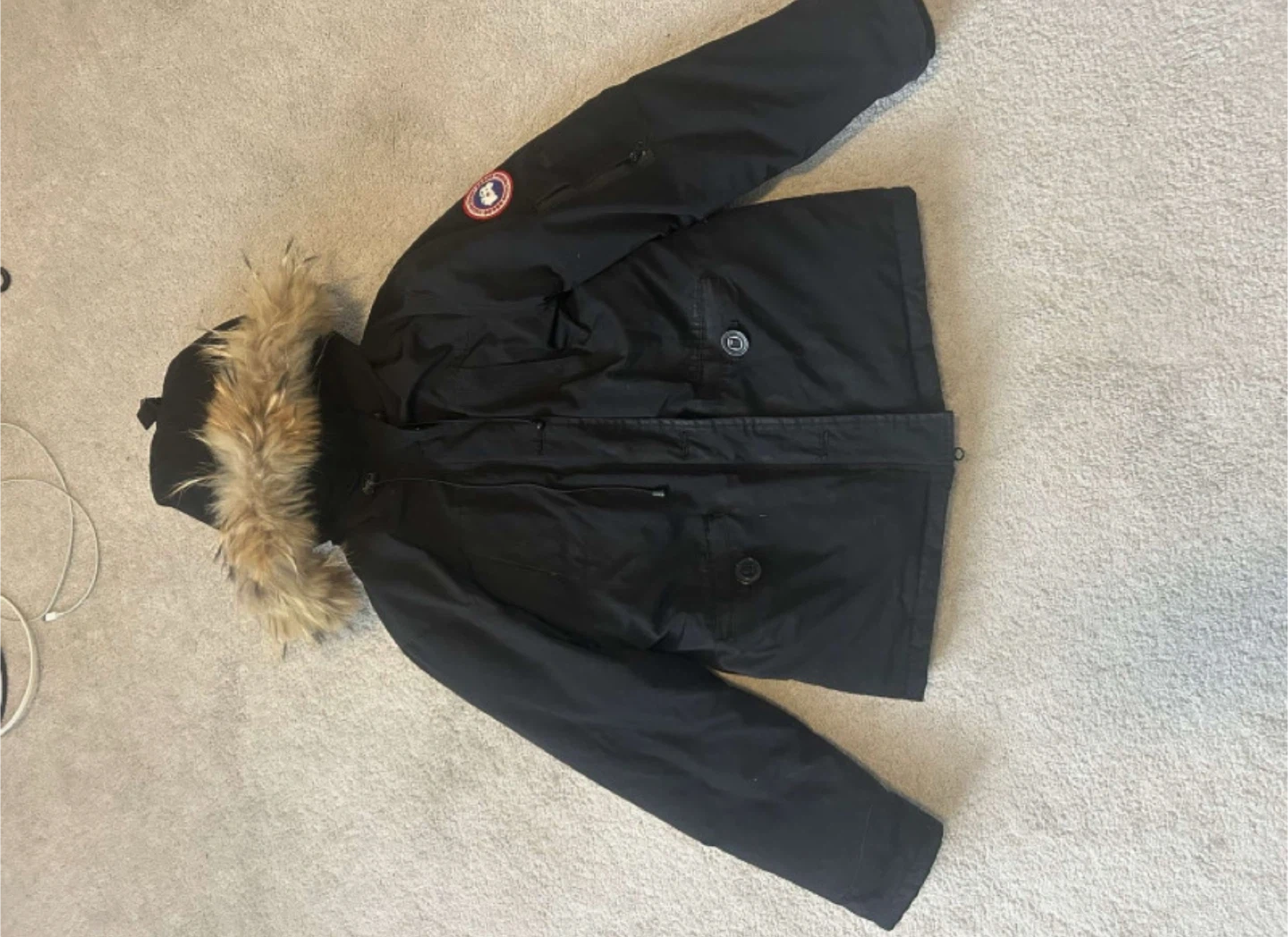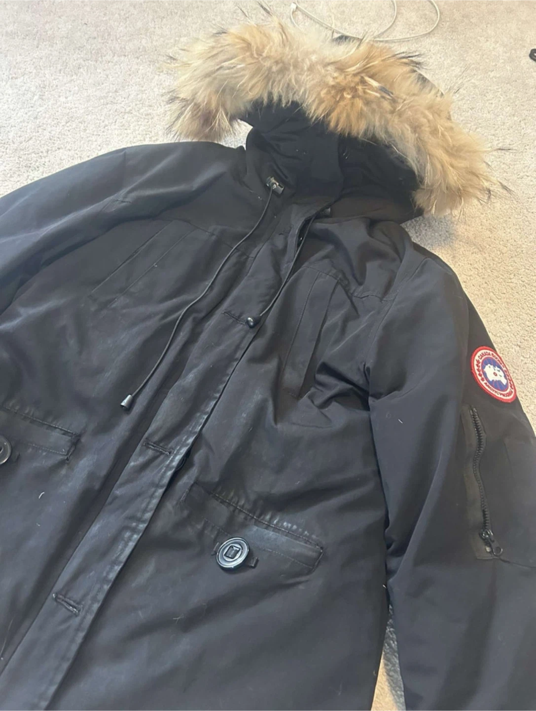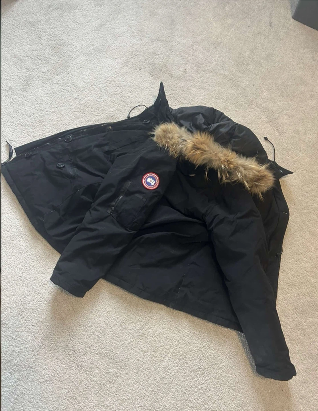 Selling a Canada Goose parka in black, size medium. It's in great condition and ready to keep you warm this winter!