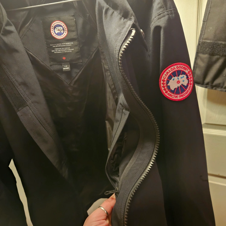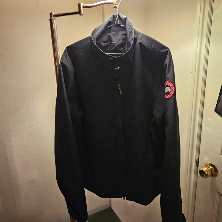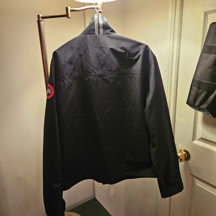 255***Purchased new, worn twice as was too big. this jacket runs large. SIZE DOWN*** lightweight 5°C to -5°C water-repellent High collar with button closure Brushed tricot chin guard Centre-front branded zipper Clean interior lining Signature double stripe reflective on back collar Adjustable cuffs Two exterior pockets: two zippered side entry pockets One interior pocket: zippered security pocket bought new for $750 open to reasonable offers.